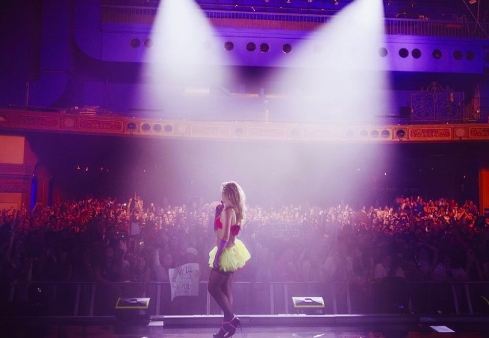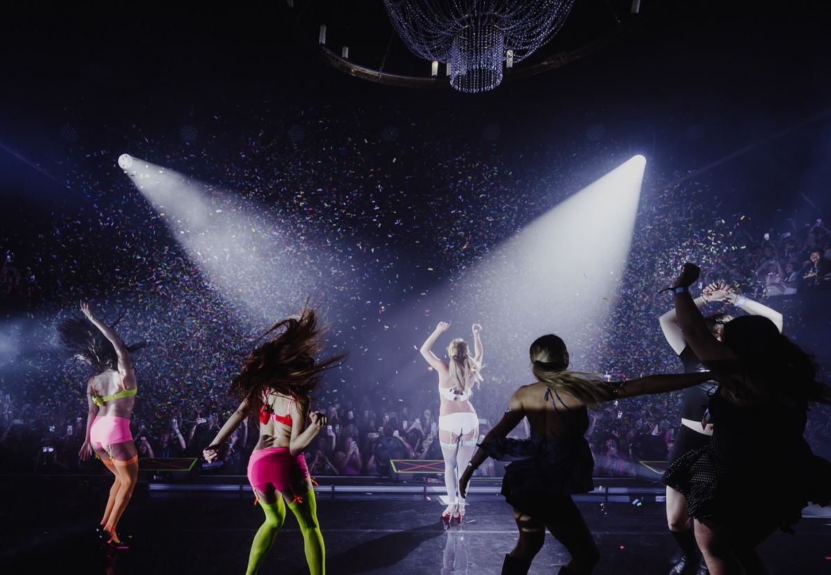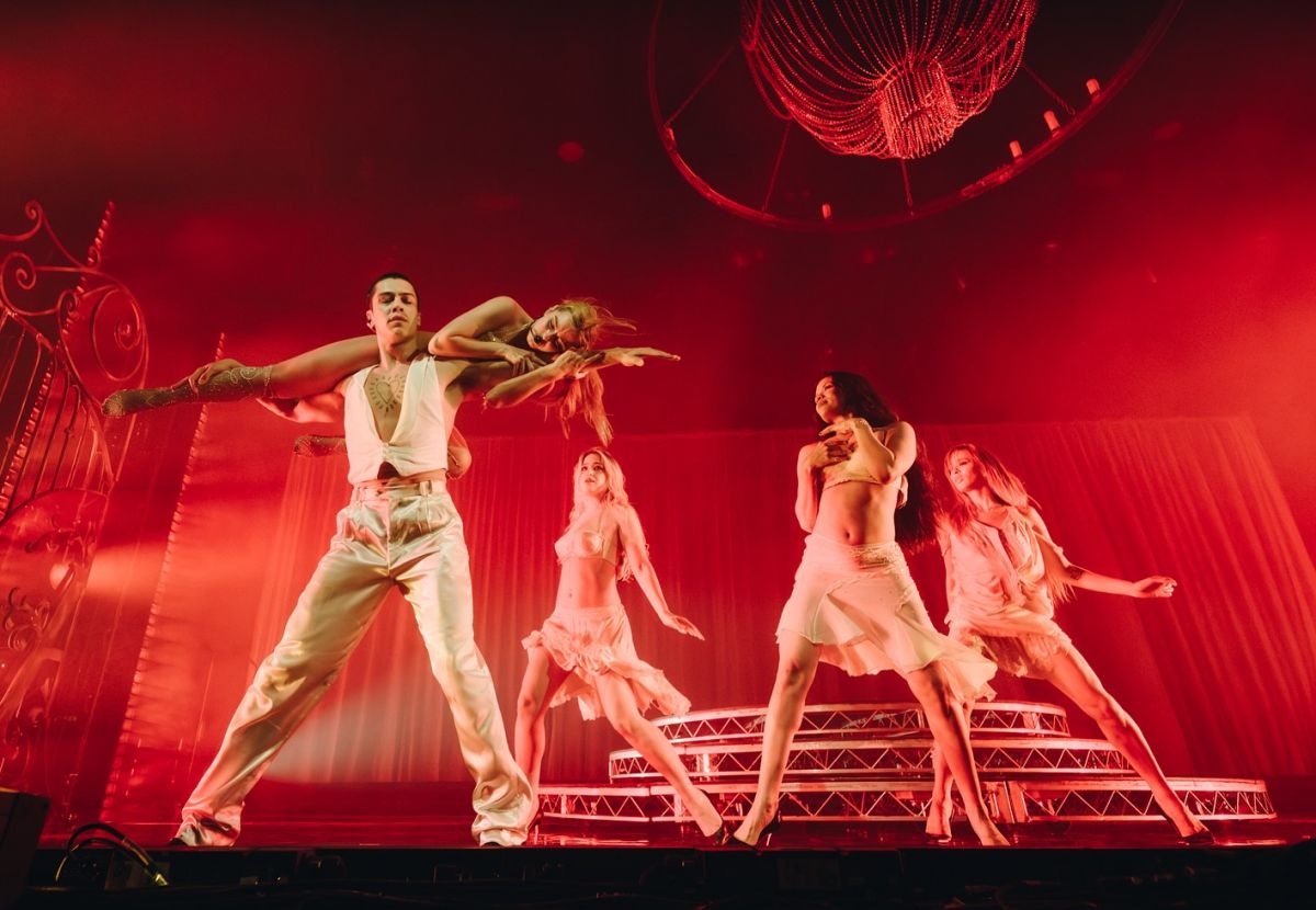 Addison Rae in White Crop Top and Leather Jeans at Staples Center in Los Angeles 06/30/2021