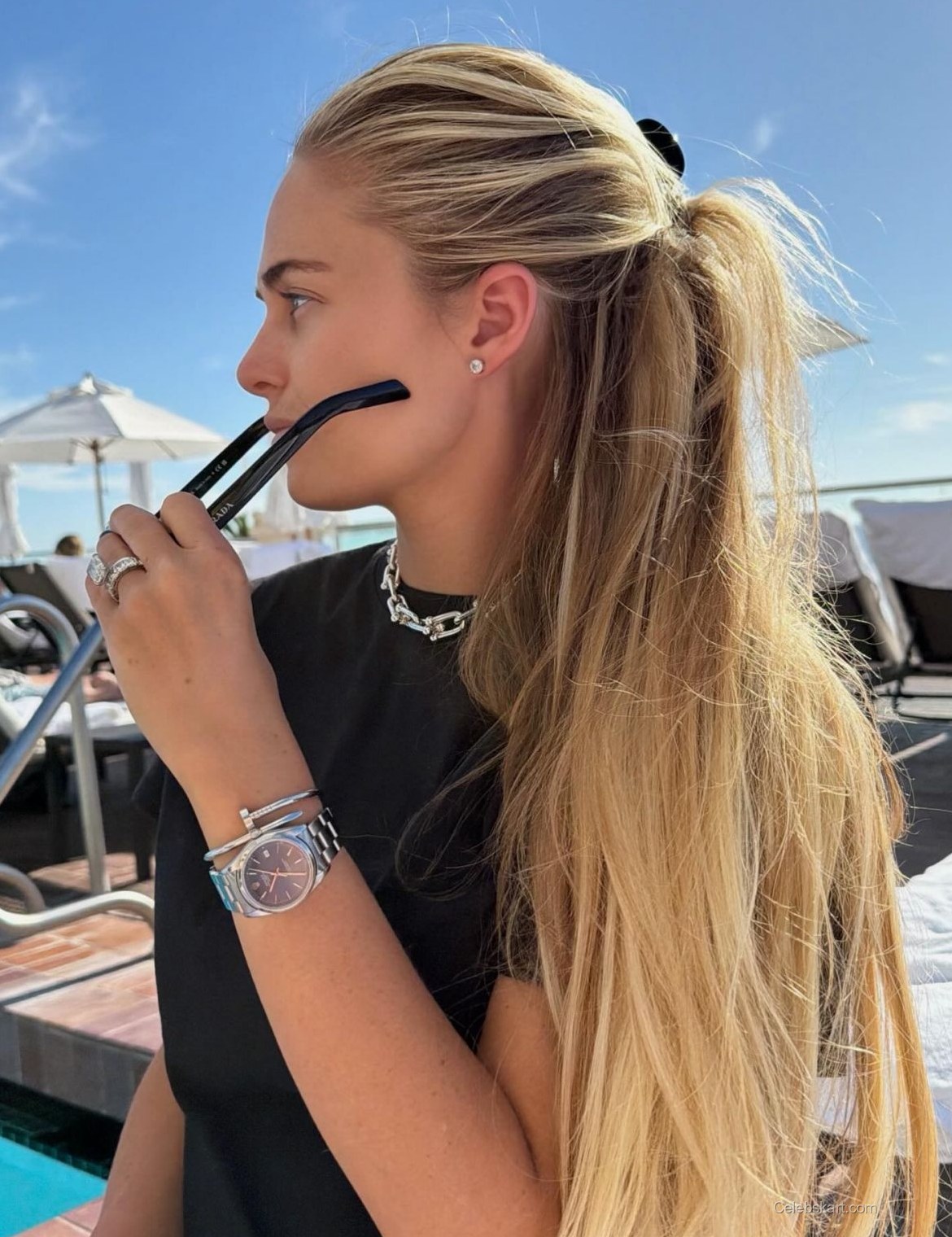 What sets Alexa Serowik's look apart is not just the outfit but how she carries it with confidence. The black crop top perfectly contrasts the natural colors of the beach, drawing attention without overpowering the scenery. Her choice of accessories, including simplistic bracelets and a trendy watch, adds a touch of elegance while maintaining a laid-back vibe. This look emphasizes that fashion doesn't have to be complicated—it can simply be about feeling good in your own skin. Explore more of her fashion choices in this refreshing beach outfit collection.