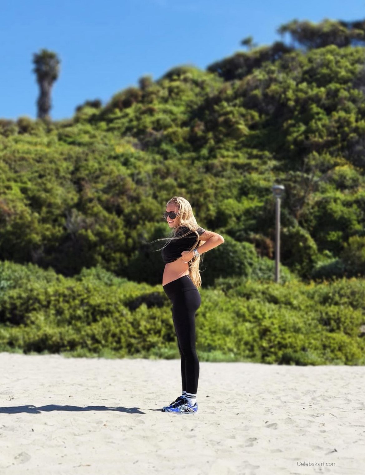The key pieces of this ensemble include a sleek black crop top, which highlights her toned midriff, and black leggings that elongate her legs. Alexa also paired her outfit with sporty sneakers, completing the casual look while ensuring comfort for a day on the sand. The choice of colors reflects a classic summer palette, emphasizing the carefree nature of the beach setting. Fans can find a similar style with options available at many online retailers. For those looking to elevate their beach attire, this versatile crop top is a must-have.