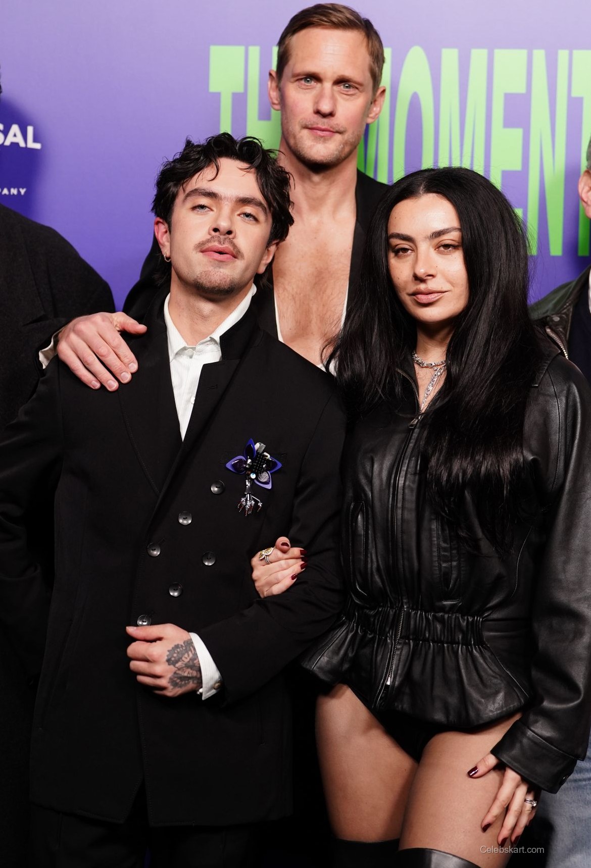 As he posed for cameras, Skarsgard exuded confidence. His stance was relaxed yet assertive, a testament to his experience in the spotlight. The backdrop of the premiere, featuring vibrant graphics of the film's title "The Moment," contrasted beautifully with his monochromatic attire. This created a striking visual that drew attention not only to his outfit but also to the event itself. He occasionally adjusted his jacket, showcasing the meticulous tailoring and adding a layer of dynamic movement to the photos.