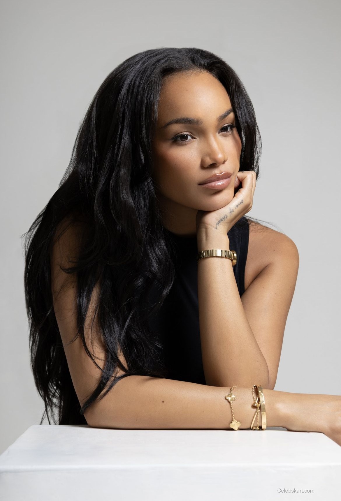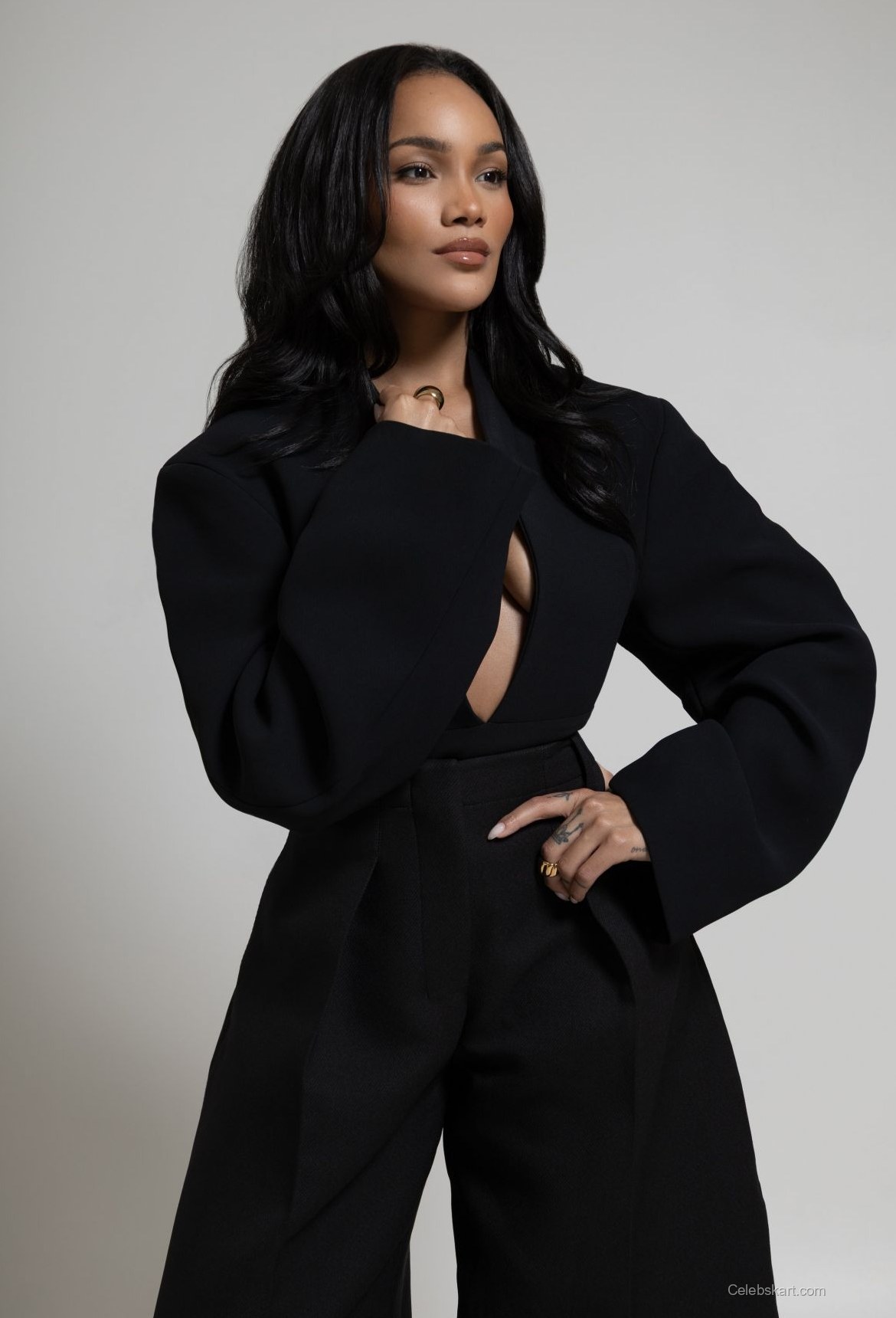 In these stunning visuals, ALLEYAH dons a minimalistic black ensemble that elegantly showcases her silhouette. The clean lines of her outfit are complemented by bold gold jewelry, which adds just the right amount of glam. The backdrop’s subtle tones enhance her look, ensuring her outfit takes center stage. It’s a brilliant example of how simplicity can be stylish, with every piece thoughtfully chosen to highlight her features. To see more of her looks from this shoot, check out ALLYIAH GAINER's fashion highlights for 2026.