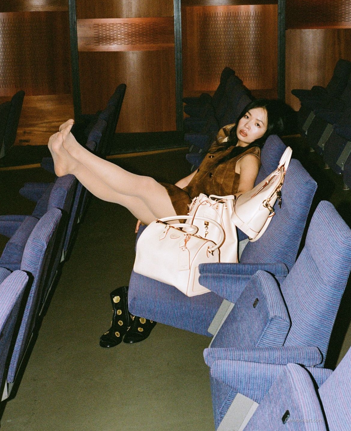 In the latest issue of Marie Claire Germany, Andrea Guo is photographed in a colorful floral outfit. The outfit features short sleeves and a loose fit. She pairs the look with knee-high black boots. The boots are adorned with striking details that add an edgy touch to the overall style. Andrea's outfit is a vibrant mix of colors and patterns, creating a dynamic visual in the feature.