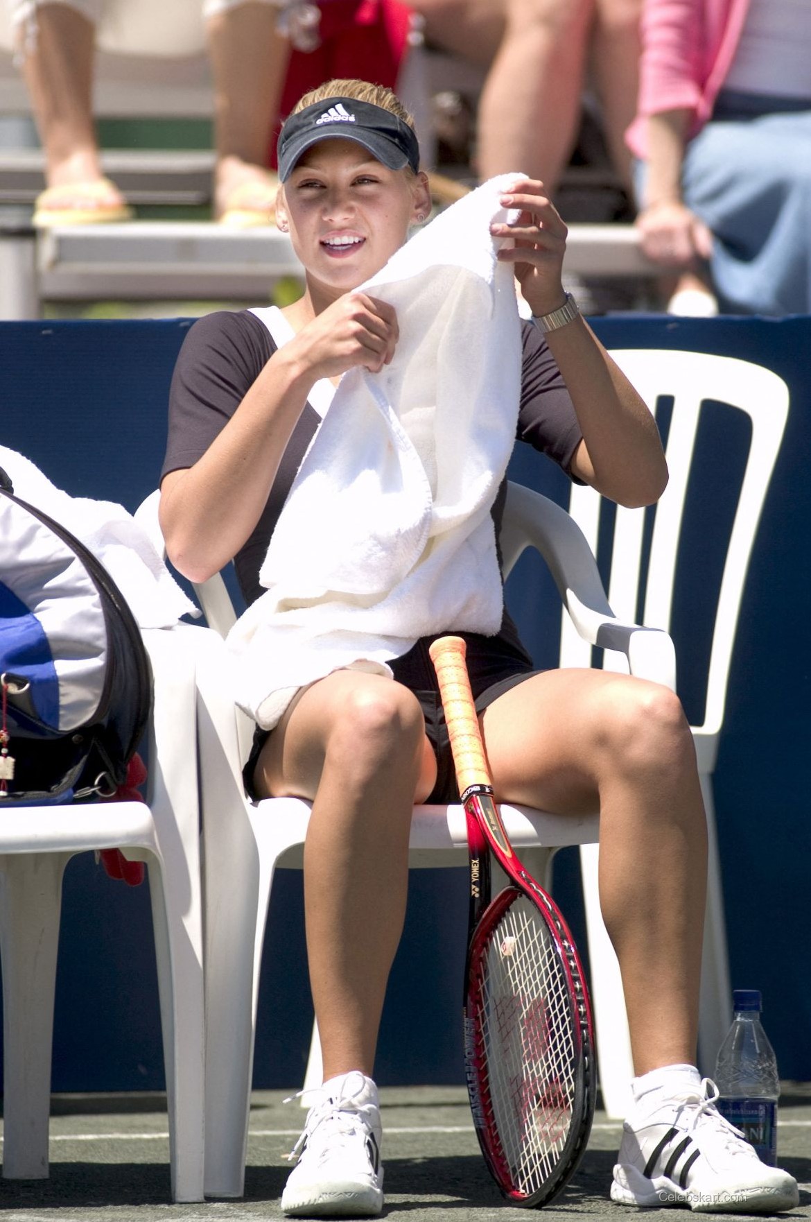 Kournikova not only showcased her skills with a racket but was also seen adjusting her visor, attentively positioning herself while engaging in the game. The light breeze swept through her hair, adding an effortless charm to her presence on the court. A warm smile lit her face as she interacted with her team, demonstrating her approachable demeanor. Fans were delighted to see her not just focused but enjoying her time, especially as she occasionally looked towards the crowd with enthusiasm.
