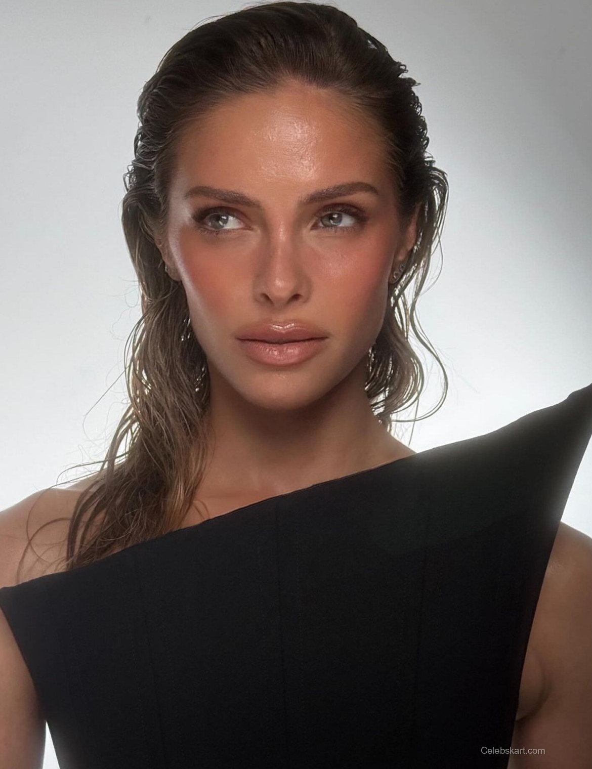 On one occasion, Anna Maria Olbrych is seen standing confidently, her body language radiating poise. The background features soft lighting that accentuates her flawless skin and elegant outfit. With her hair styled in loose waves, she captures the essence of modern femininity.