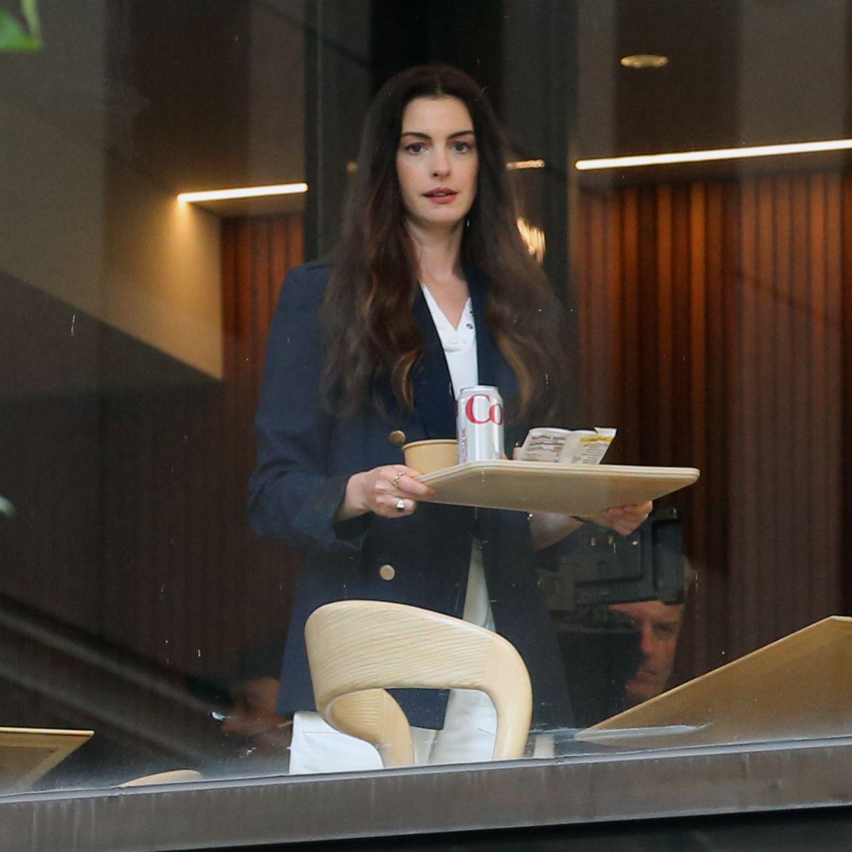 Anne Hathaway on Devil Wears Prada 2 Set July 2025