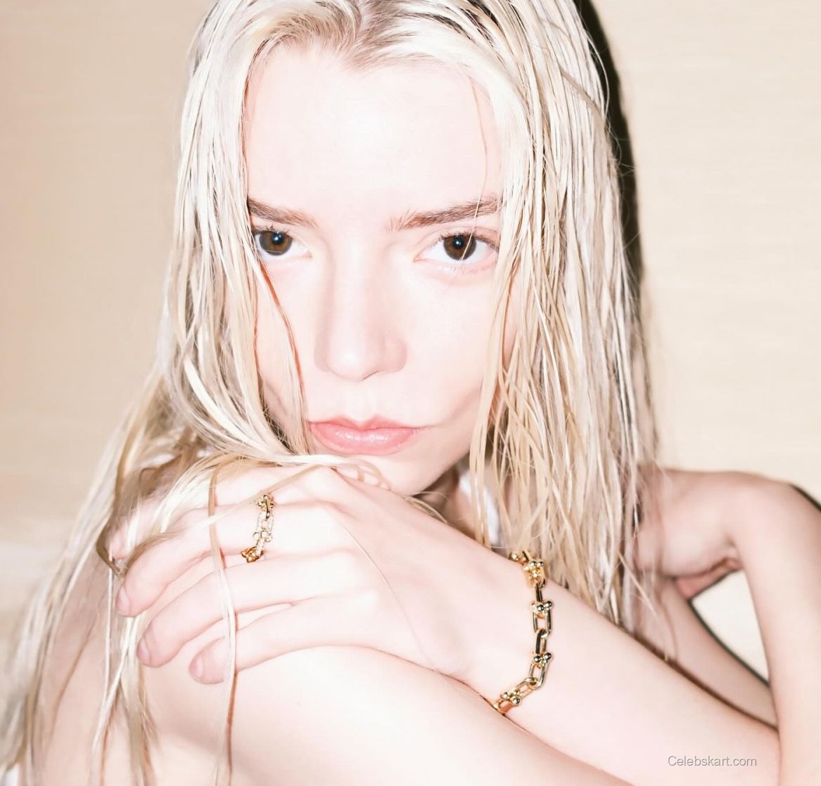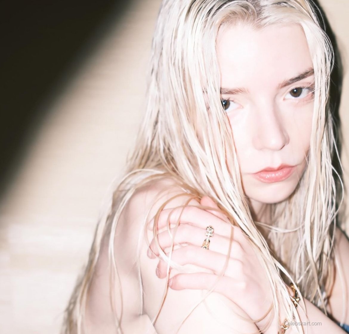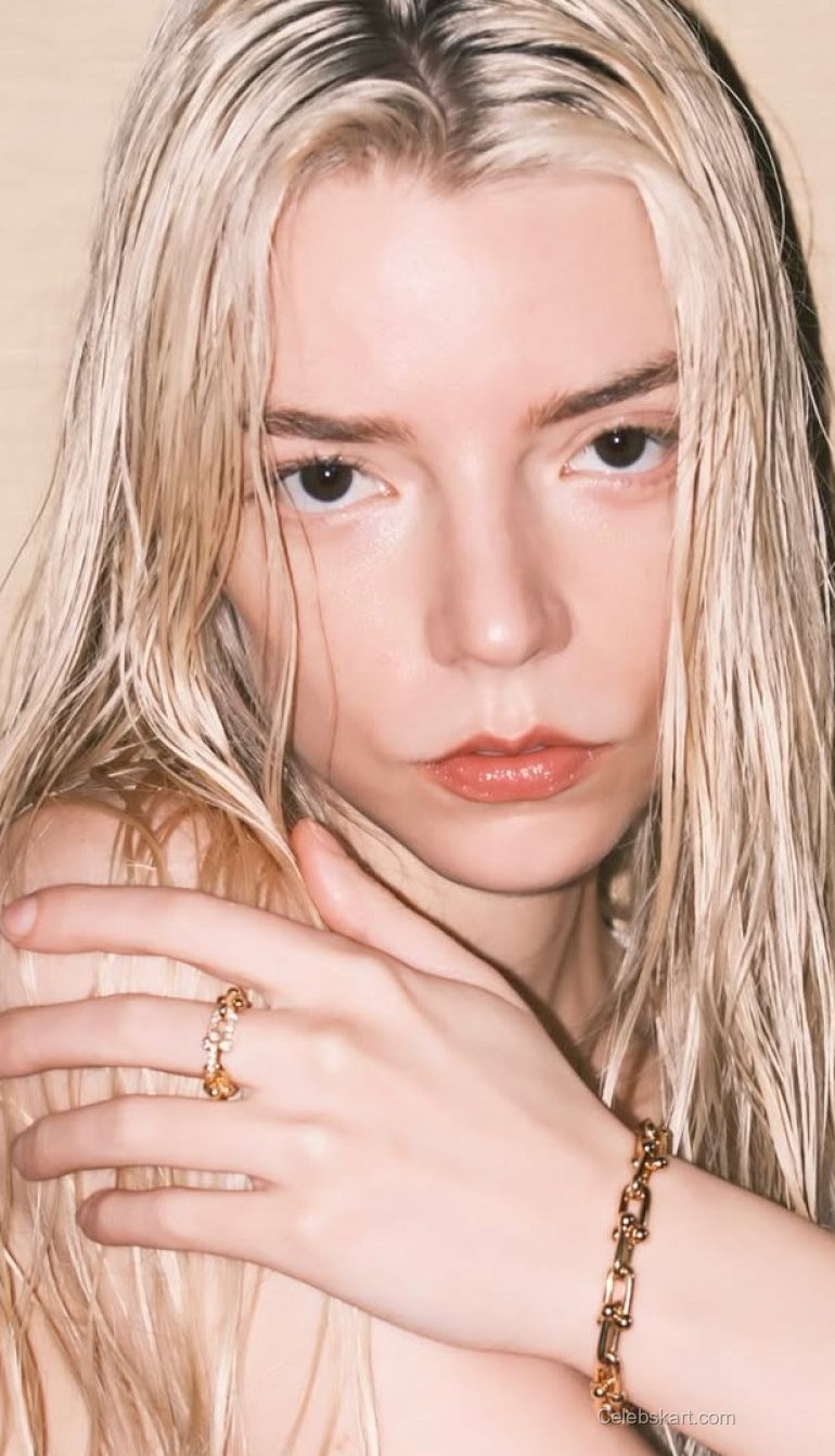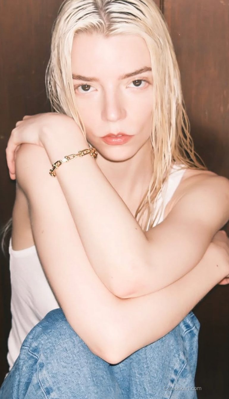 In the midst of the event, Anya Taylor-Joy posed with a subtle confidence, engaging with the camera as she held her arms gently against her. The soft lighting accentuated her features, particularly her expressive eyes that conveyed both strength and warmth. At one moment, she adjusted her hair, showcasing the elegance of her jewelry while maintaining a poised, captivating demeanor.