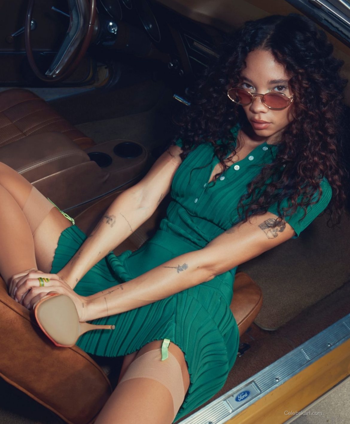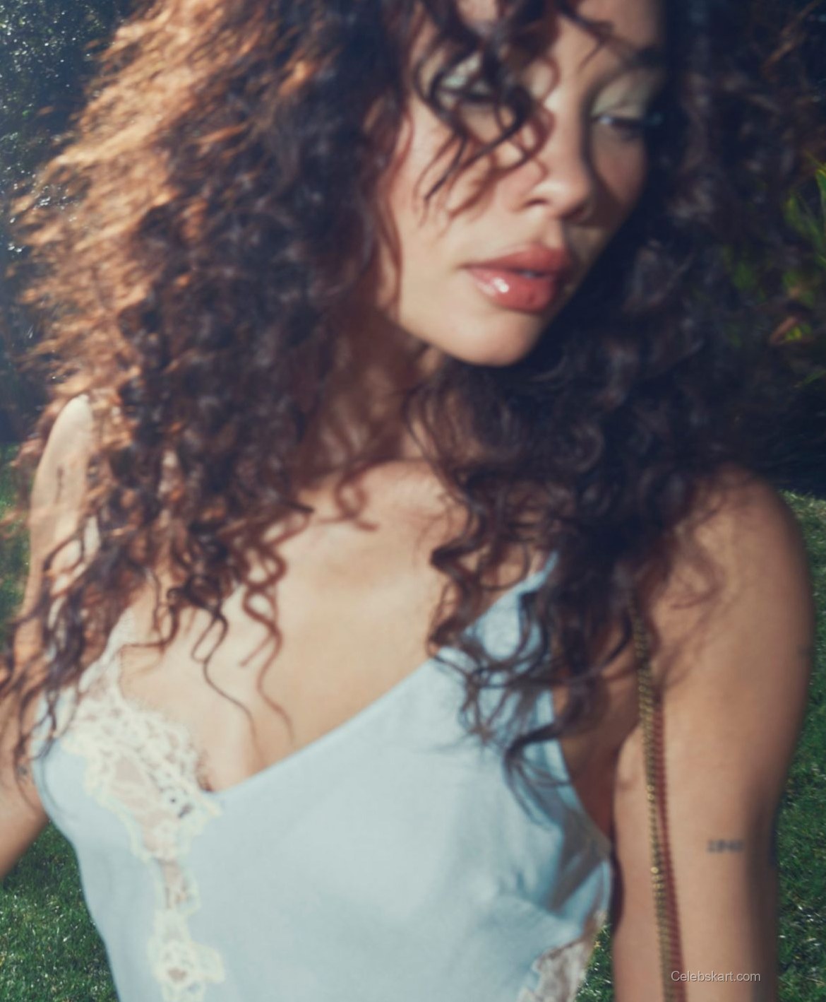 In these shots, Ashley poses with confidence, her expressive style accentuated by the lush greenery in the background. The sunlight filters through the trees, complementing her liquid curls. Her demeanor radiates a mix of playfulness and sophistication, making her stand out even more. As she adjusts her outfit, the movement highlights the fluidity between fashion and nature’s beauty, creating a captivating visual narrative.