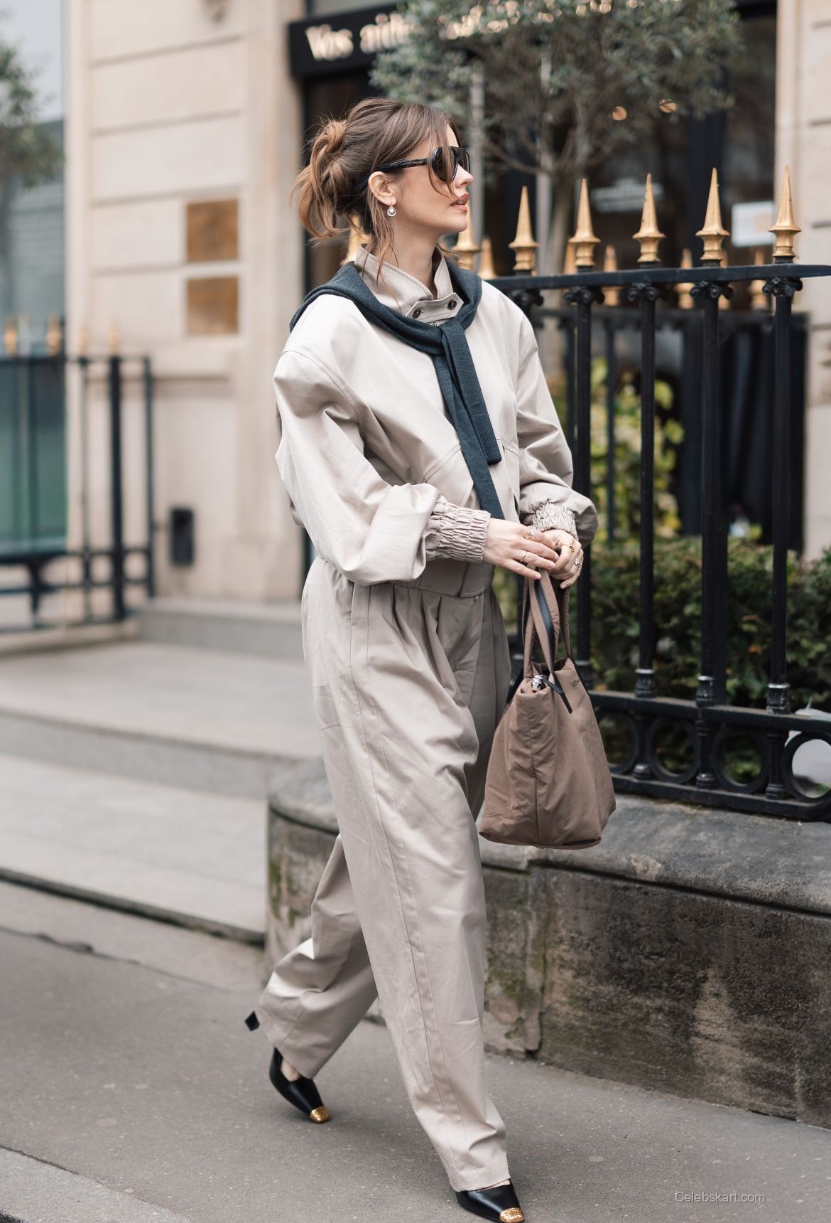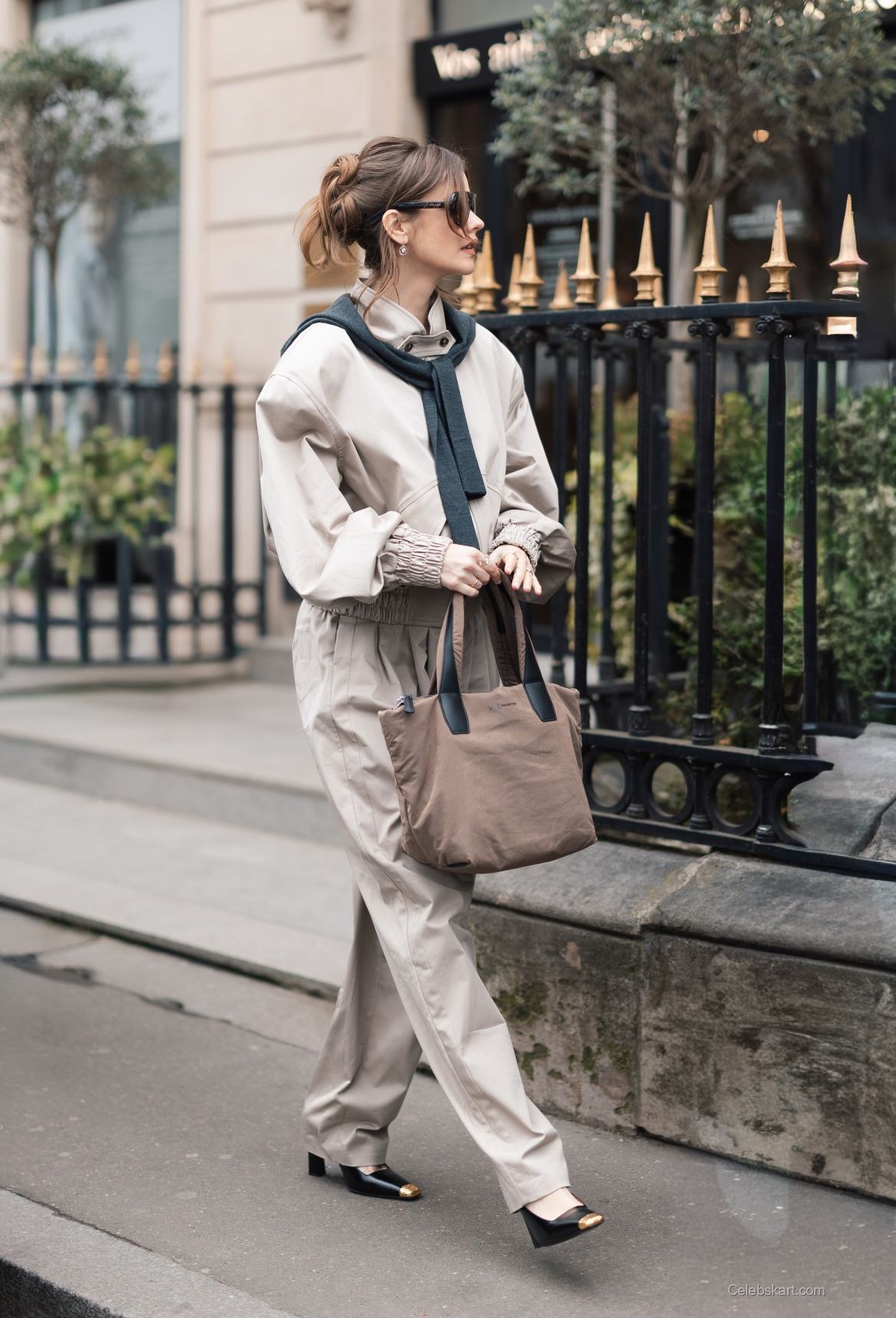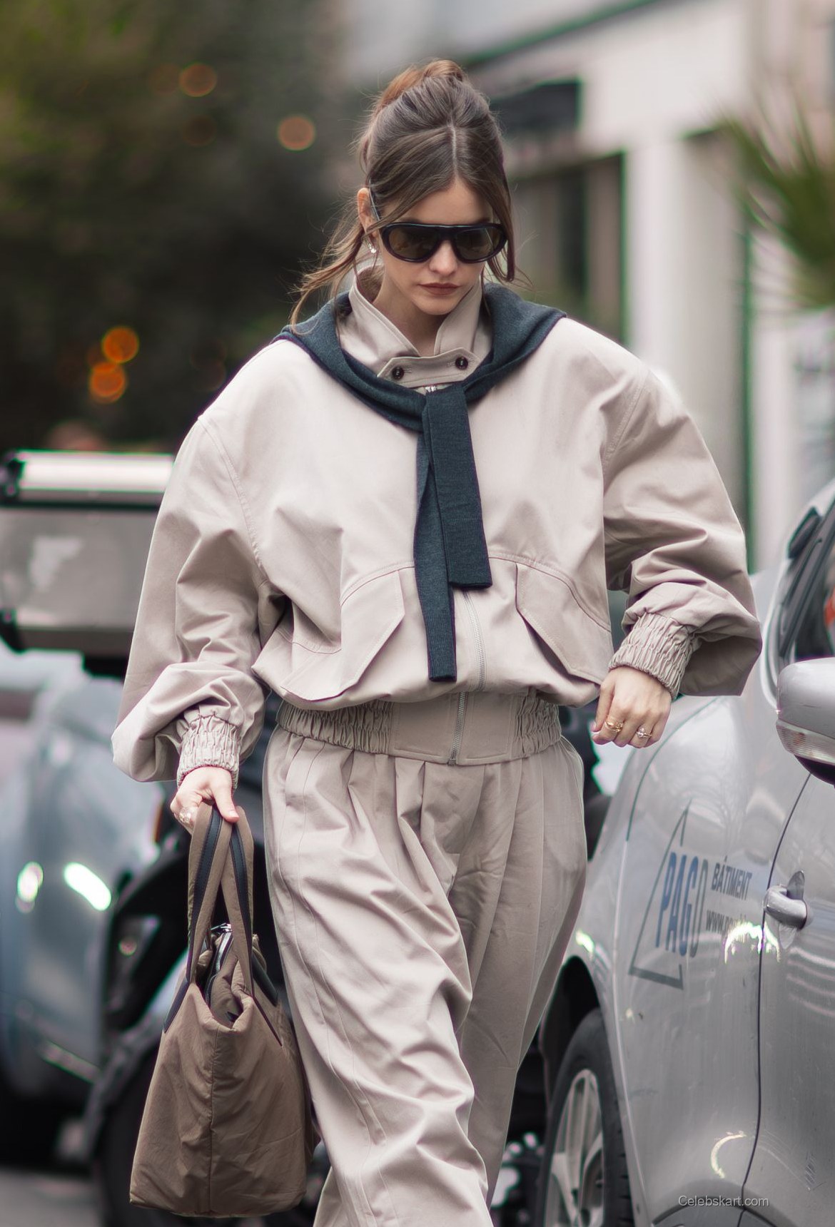 This look stands out not only for its neutral palette but for how Barbara combined comfort with high fashion. The oversized fit of her jacket and pants gives off a relaxed vibe while still appearing tailored. Such an outfit is perfect for strolling through the city or attending casual events. The simplicity of the beige tones makes it versatile for various occasions, as one can see from how she balances chicness and ease.