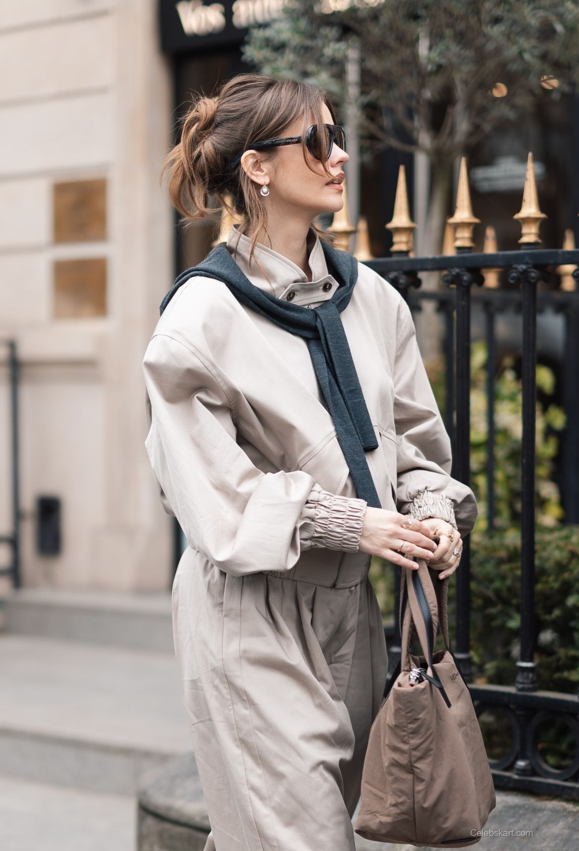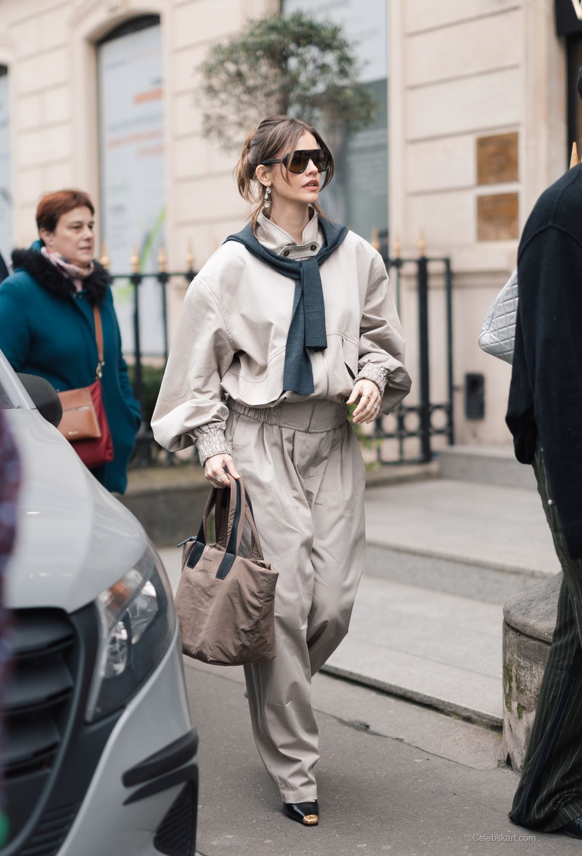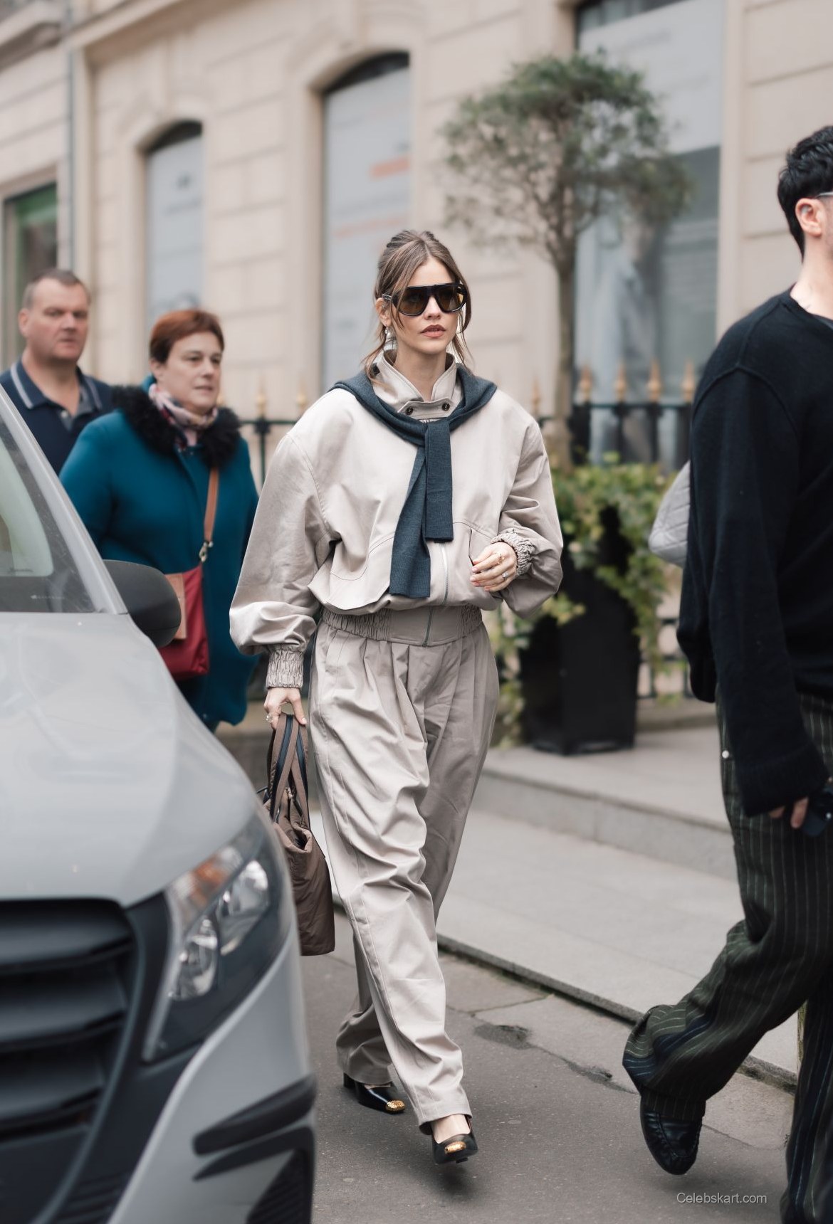 This look stands out not only for its neutral palette but for how Barbara combined comfort with high fashion. The oversized fit of her jacket and pants gives off a relaxed vibe while still appearing tailored. Such an outfit is perfect for strolling through the city or attending casual events. The simplicity of the beige tones makes it versatile for various occasions, as one can see from how she balances chicness and ease.