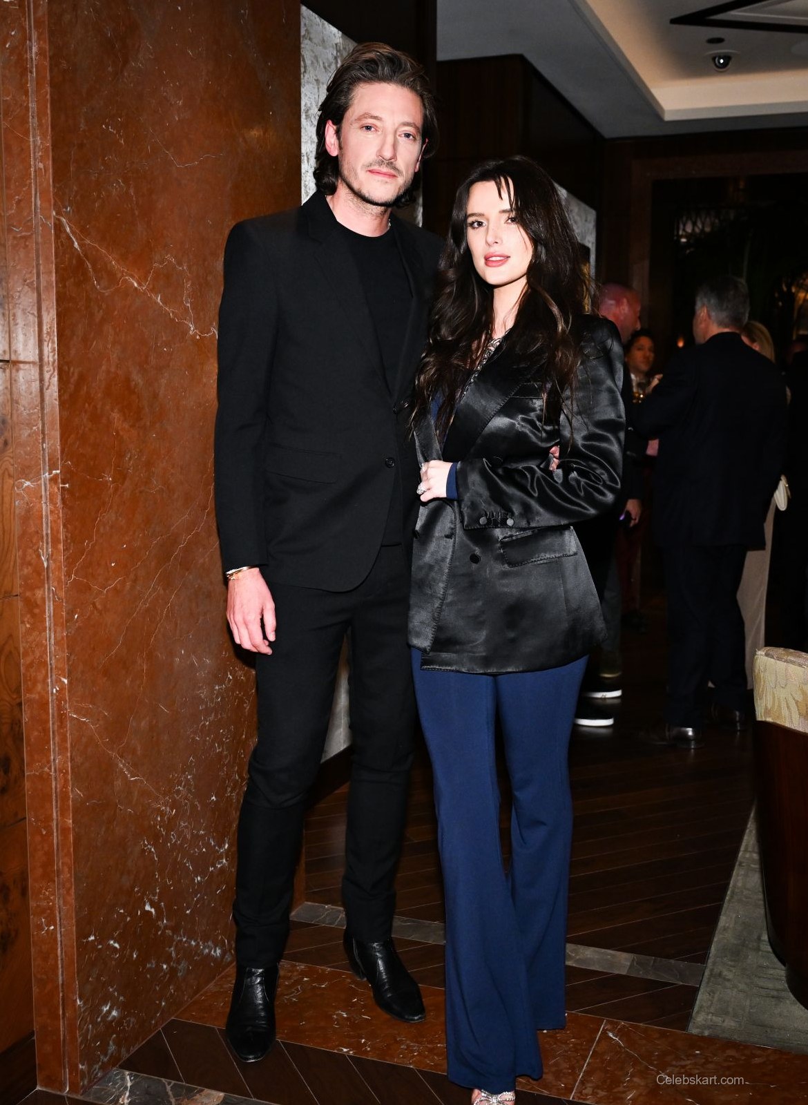 As she posed for photographs, Bella exuded a confident aura. With her long hair cascading elegantly over her shoulders, she coupled her serious looks with subtle smiles, engaging with the crowd around her. The rich textures of her outfit stood out brilliantly against the backdrop of the event, drawing eyes from every angle. Standing beside a companion, they both shared a moment that highlighted the friendly and warm atmosphere of the evening, making for a memorable sight.