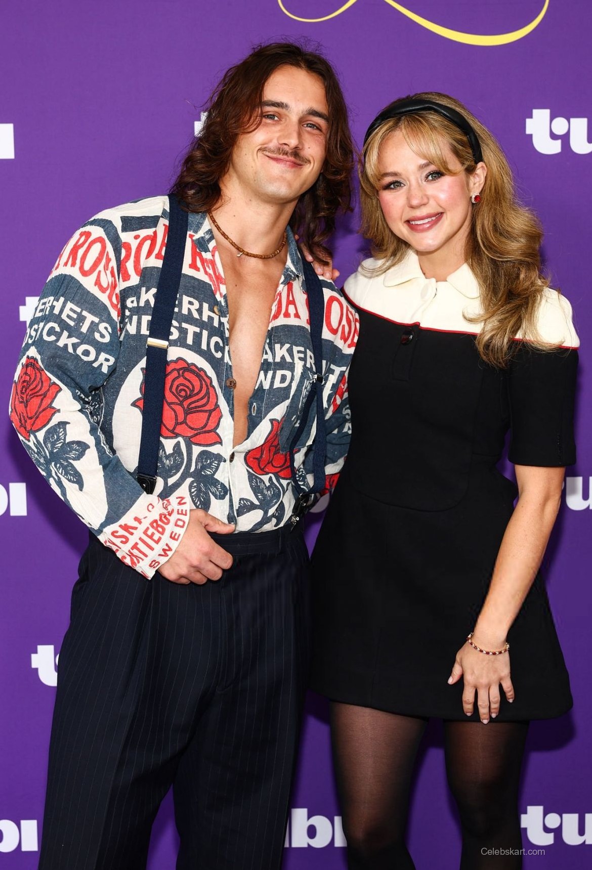 In one captivating moment, Brec posed confidently with her arms clasped, exuding an aura of grace and poise. The background of the event, adorned in Tubi's signature purple, provided a vibrant contrast to her outfit. Her carefully styled hair, flowing in soft waves, added to the refined look, while her makeup subtly highlighted her features. Shimmering earrings and a matching headband completed her perfect ensemble.