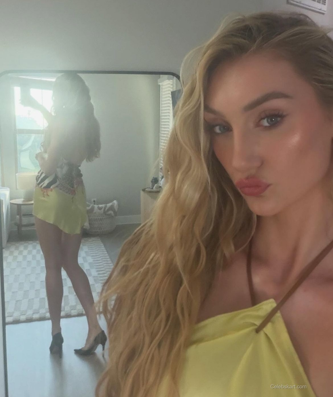 In the photos, Cameron poses in various settings, exuding confidence. The evening backdrop softens the edges of her look, highlighting both her dress and her radiant smile. One moment captures her playfully adjusting her hair, while another shows her holding her bag just right, facing the camera with a charming expression. Such genuine interactions only add to the appeal of her Instagram posts. Explore more outfits from this event with our link on Cameron Brink at events.