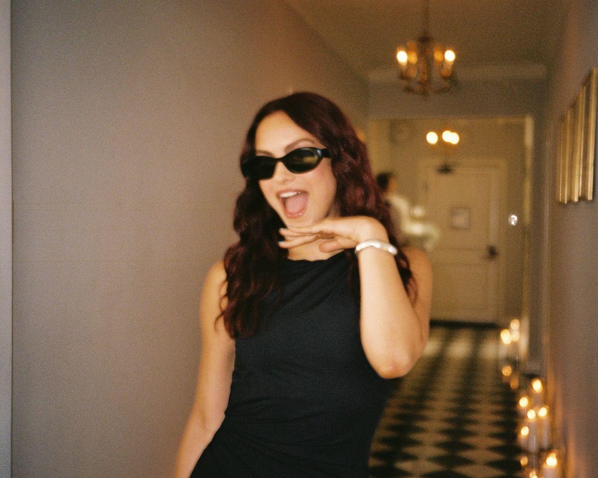 Camila Mendes in Black Transparent Top and Satin Bottom during Photoshoot