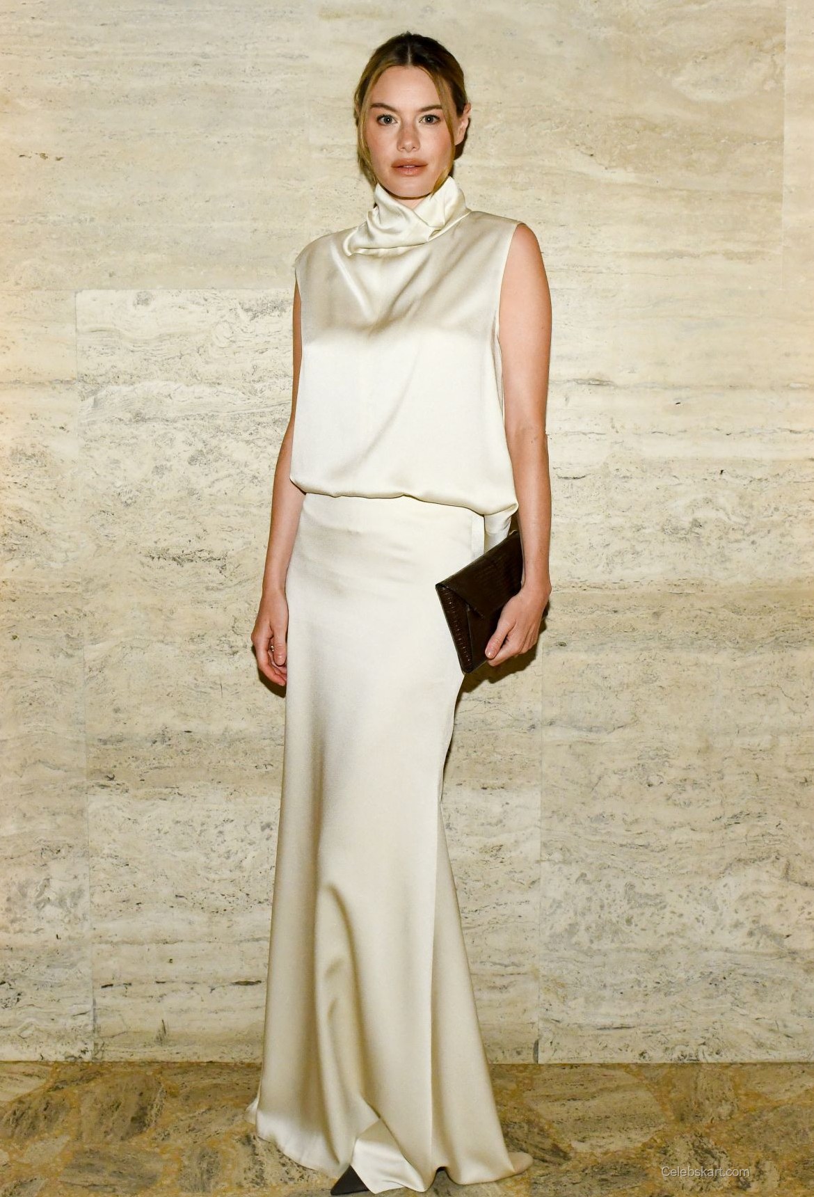 Camille Rowe turned heads at perfectly complemented the sophisticated atmosphere of the event in a white gown, serving a chic and fashionable outfit.