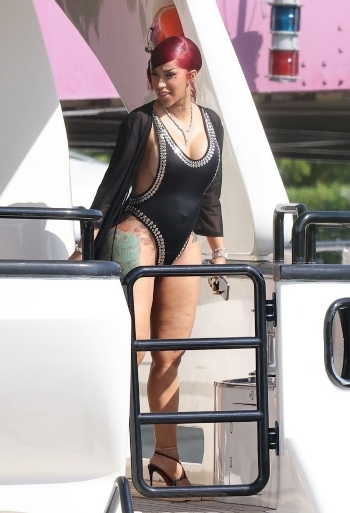 Cardi B in swimsuit on a yacht in Miami, May 2025