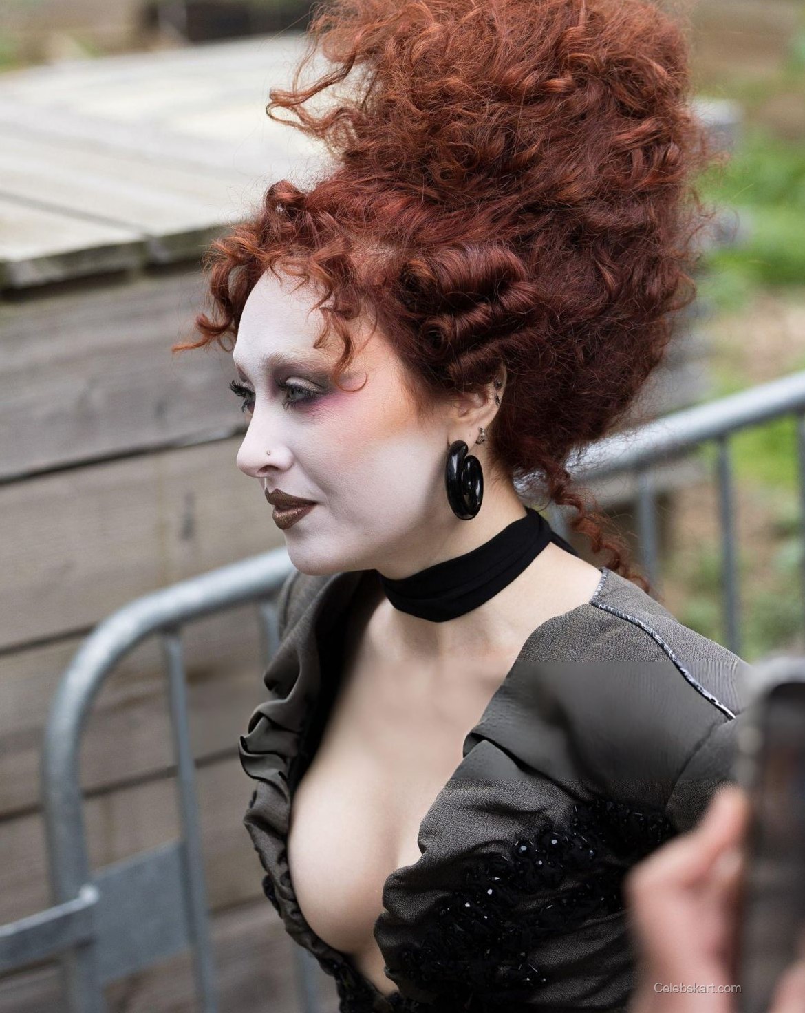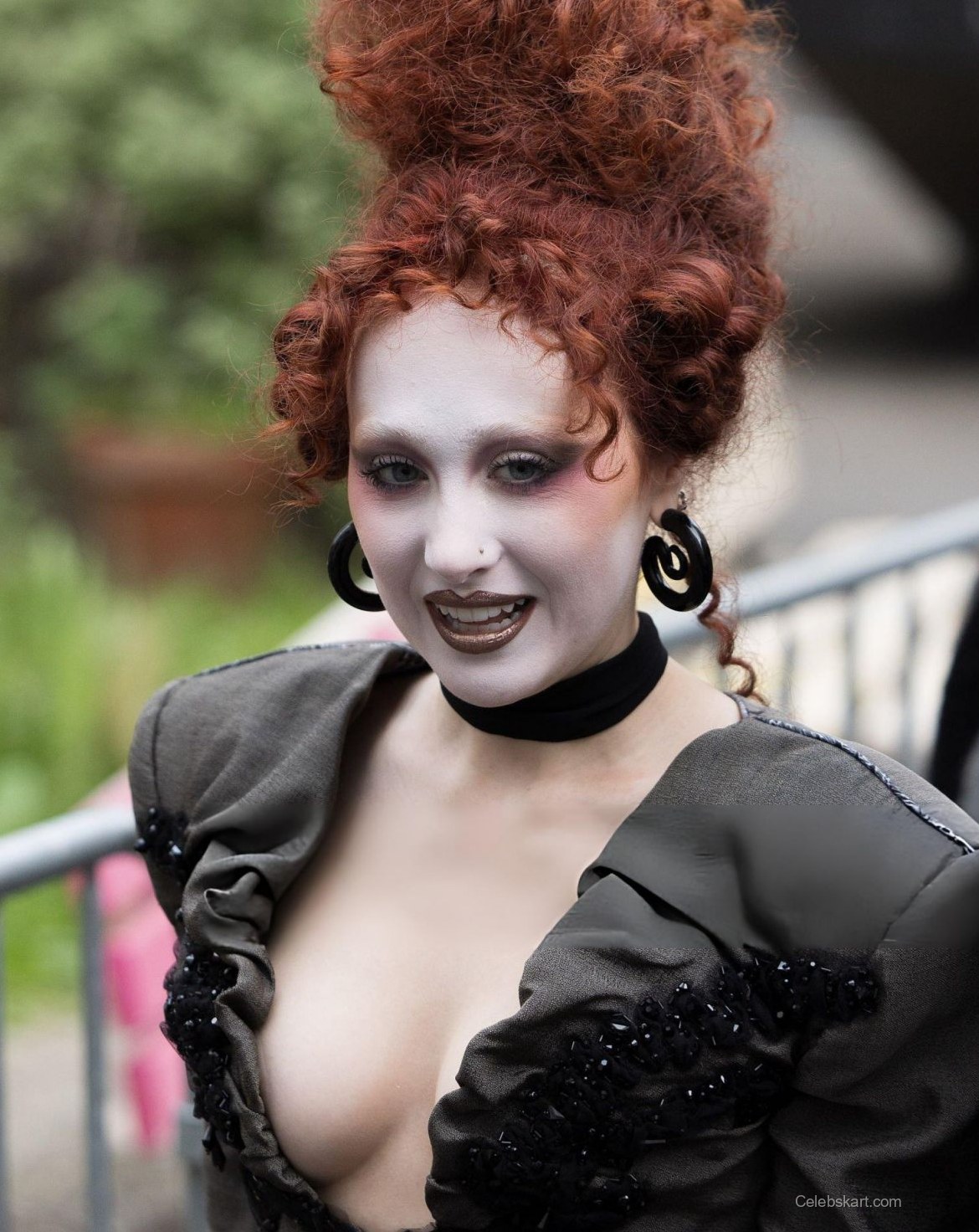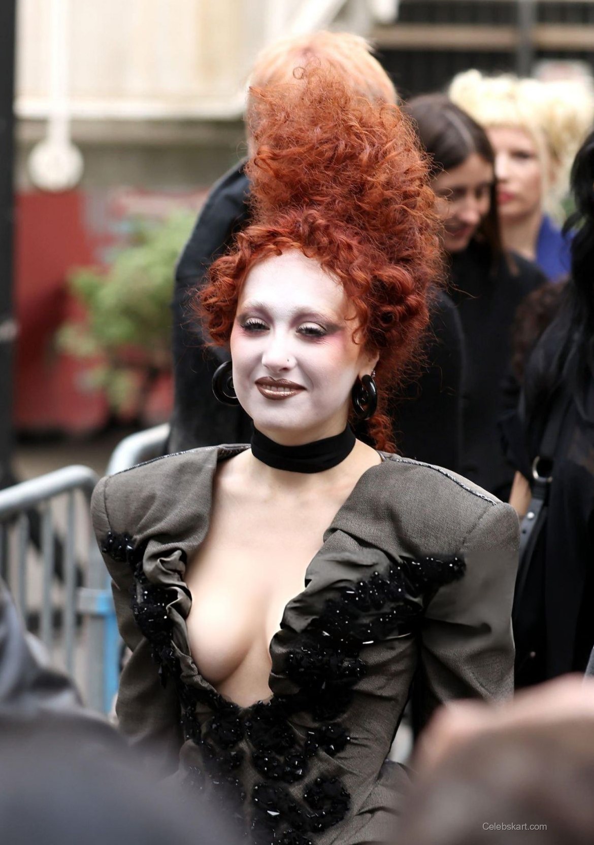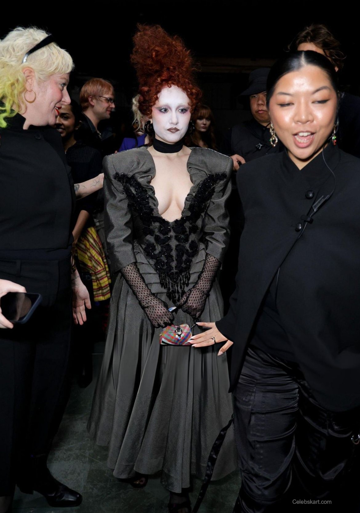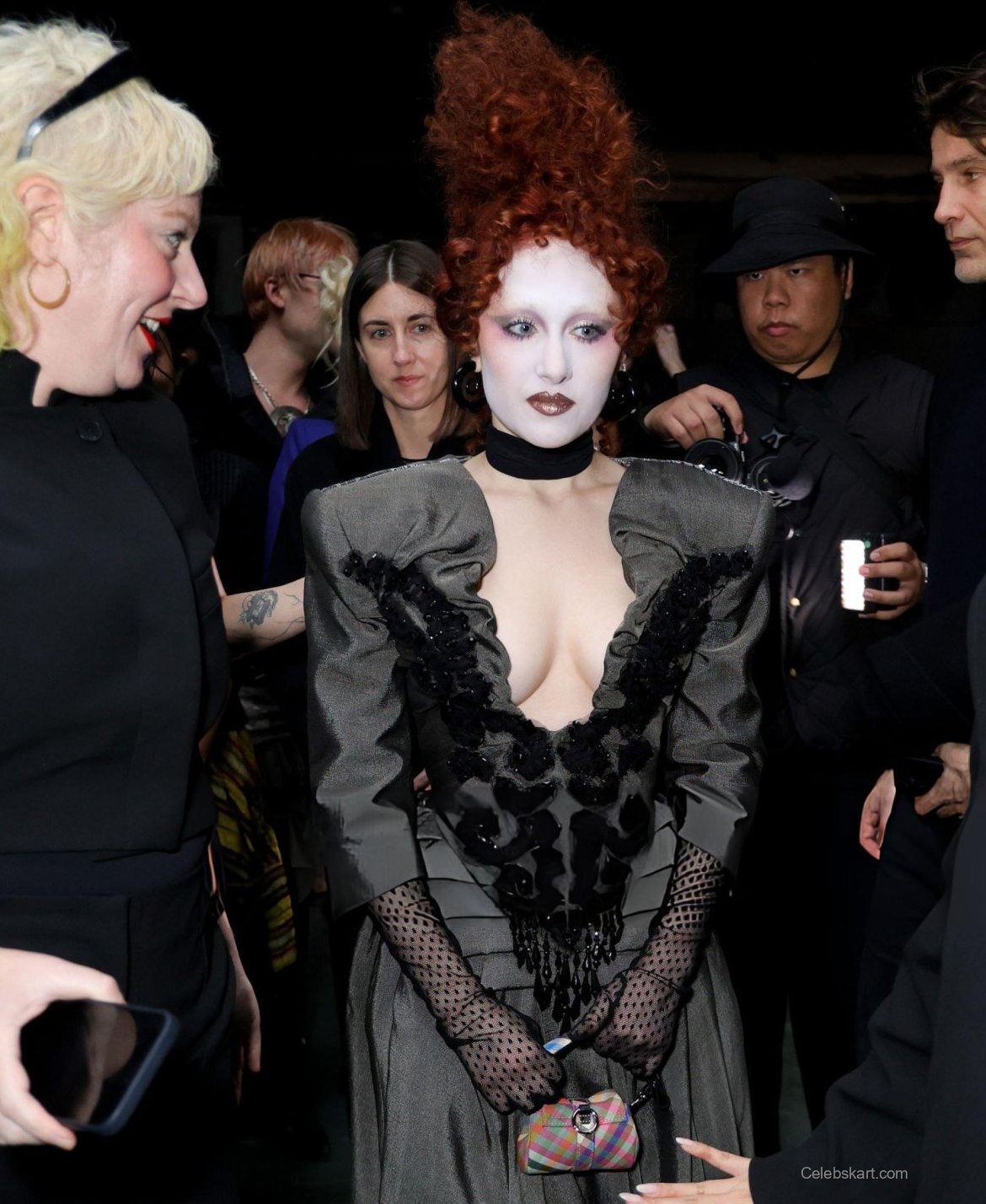 As she stood amid a flurry of attendees, Chappell’s posture radiated confidence. Her head-to-toe ensemble was complemented by bold makeup that emphasized her striking features, including a pale complexion and dark, dramatic eye makeup. The atmosphere buzzed around her as she shared smiles and moments with fellow guests, embodying the spirit of the event. Chappell appeared relaxed and engaged, making her way through the crowd with a charming ebb and flow, connecting with those around her.