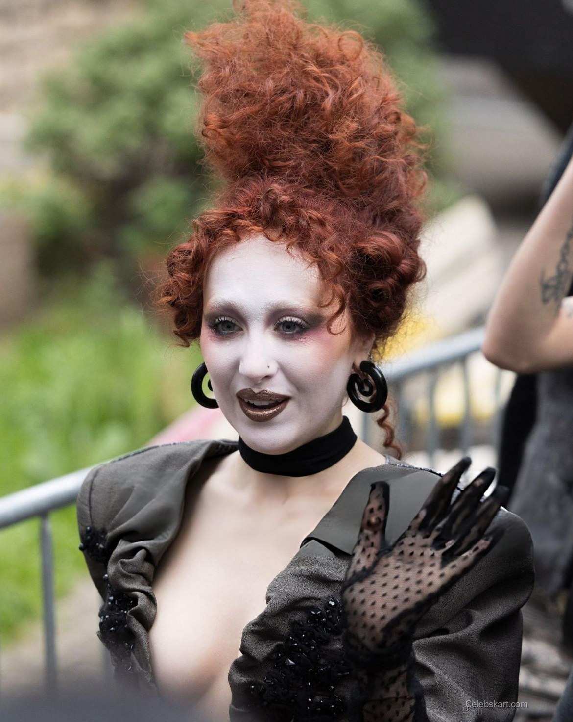Chappell's outfit featured a striking gray ensemble that captivated photographers and fans alike. The design highlighted intricate details, including ruffled elements and embroidered patterns, making it a true showstopper. The neckline was daring, with a plunge that accentuated the figure, while the long sleeves gave a touch of sophistication. The contrasting textures created a dynamic visual that was mesmerizing to behold. Pairing the look with delicate lace gloves added an intriguing layer, enhancing the overall aesthetic.