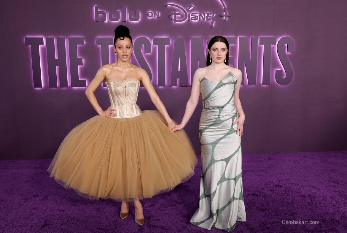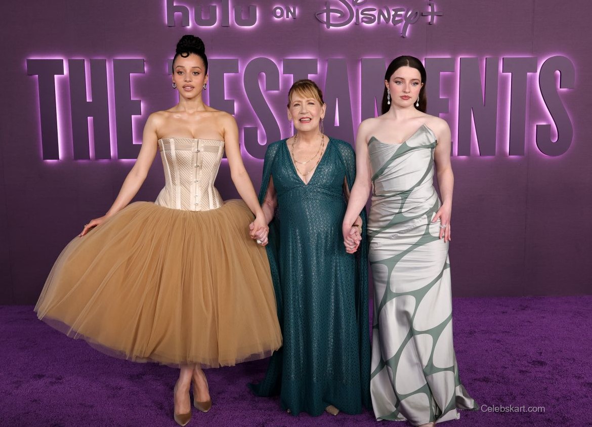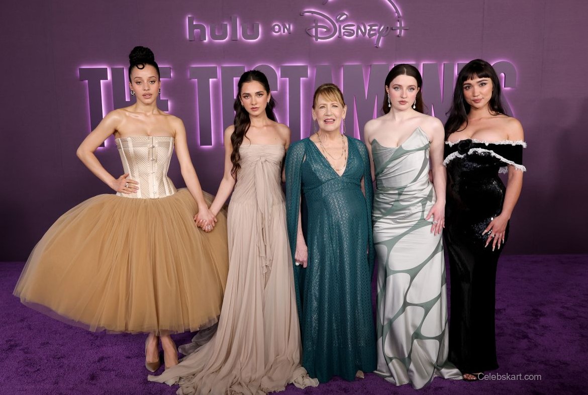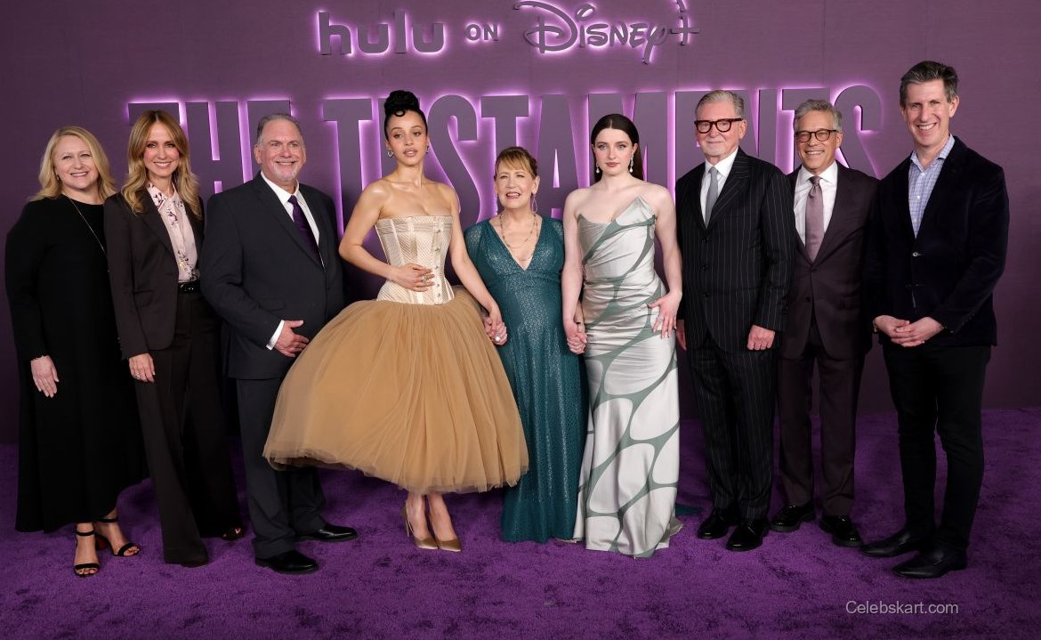 The Testaments premiere was a star-studded affair, drawing a wide array of talent from the entertainment industry. Chase Infiniti shared the spotlight with notable figures, engaging in lighthearted conversations as they posed for group shots. The ambiance was lively, with fans cheering and capturing moments on their cameras, adding an extra layer of excitement to the evening.