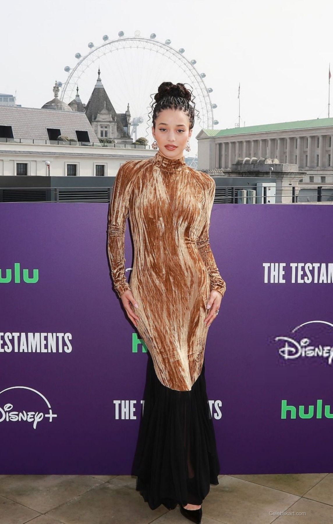Chase Infinity made a memorable appearance at the UK photocall for The Testaments, held at Raffles in London. Sporting a striking brown dress, she captured the attention of both fans and onlookers alike. Her outfit, which beautifully combined modern style with classic elements, was a remarkable talking point at this high-profile event.