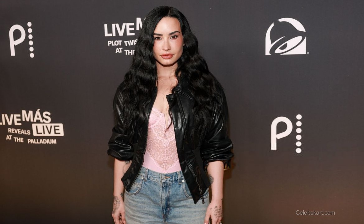 The key elements of Demi's outfit included a cropped black leather jacket that added a rock vibe to her ensemble. Underneath, she wore a blush pink lace bodysuit that peeked through, contributing a soft touch to her appearance. Completing her look were high-waisted denim shorts that flowed effortlessly, emphasizing her unique style. The combination of tough leather and delicate lace showcased a perfect blend of contrasting fashion elements.