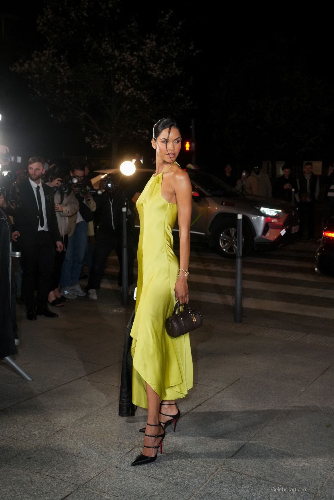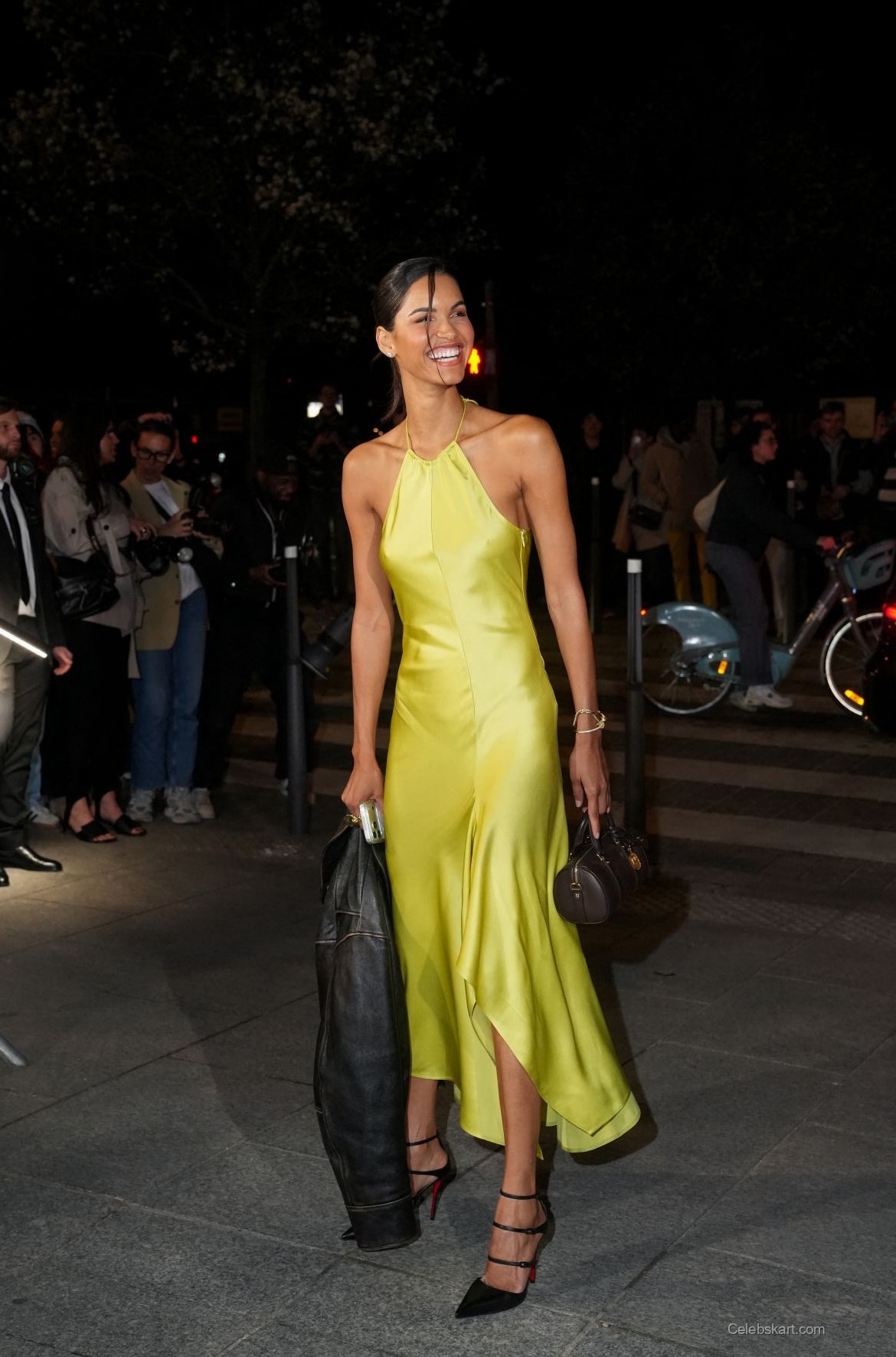 As she greeted fans and photographers, Diane wore a captivating smile that lit up the night. She posed confidently, allowing her dress to sway gently with her movements. The atmosphere buzzed with excitement as she turned to engage with the crowd, showcasing the gown’s movement and sheen. Under the bright lights of Paris, her outfit truly came to life, reflecting the vibrant energy of the fashion scene.