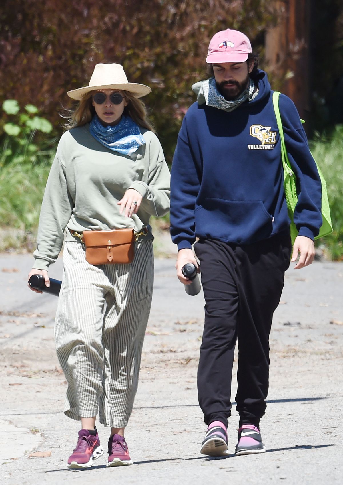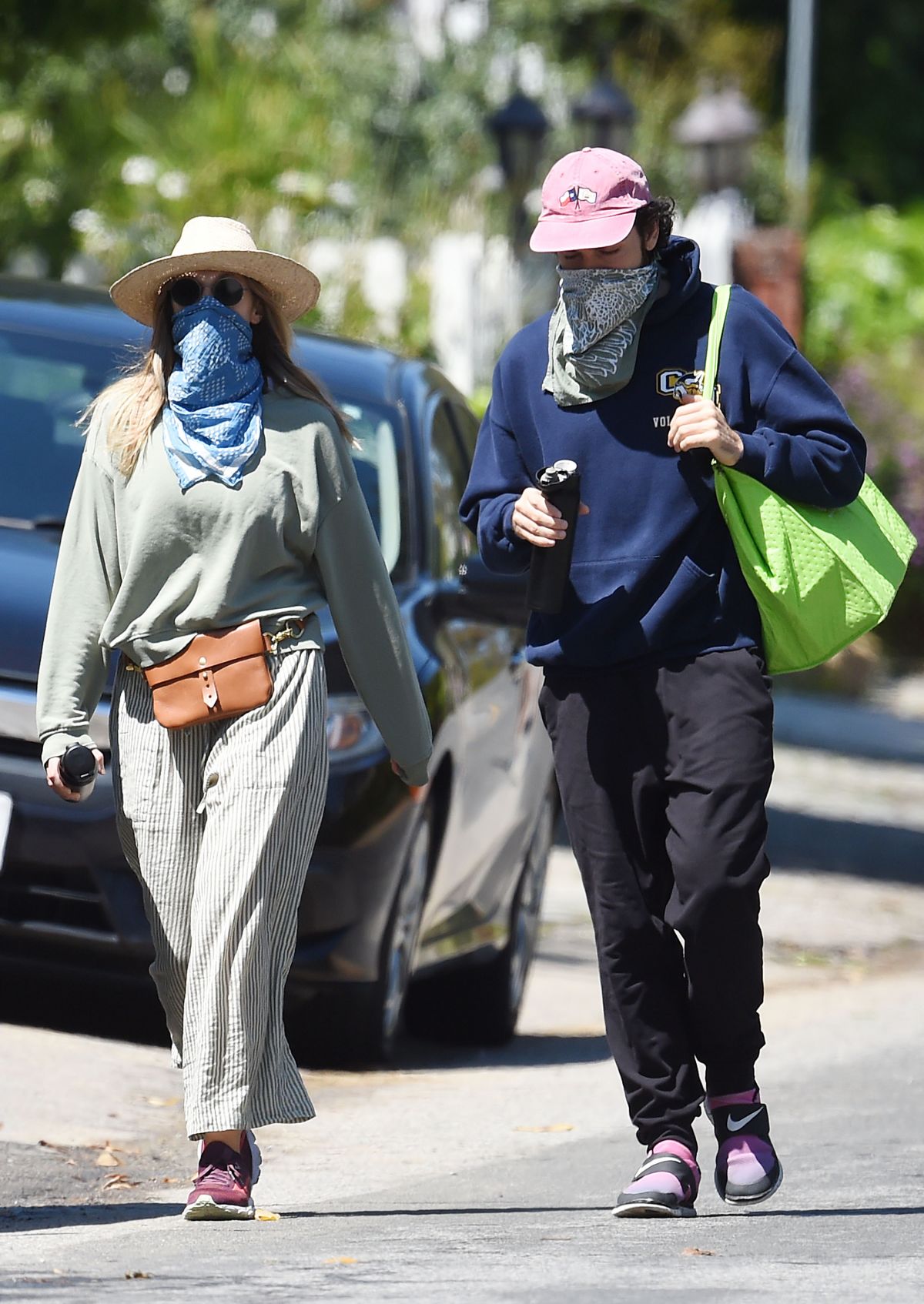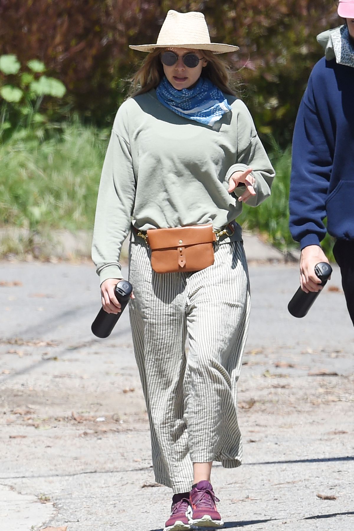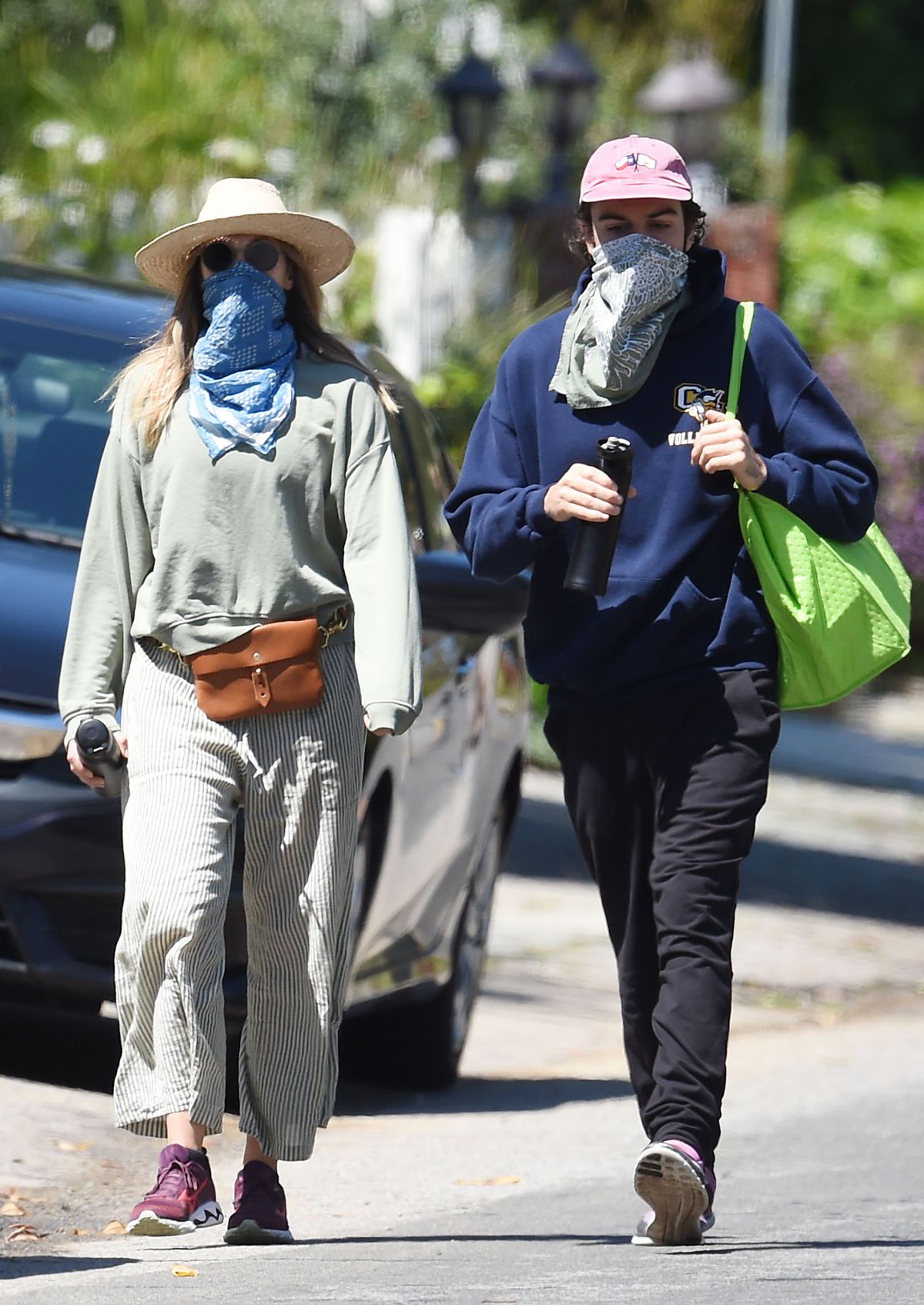 Elizabeth Olsen and fiance Robbie Arnett with homemade masks out in Hollywood Hills 2020/04/11