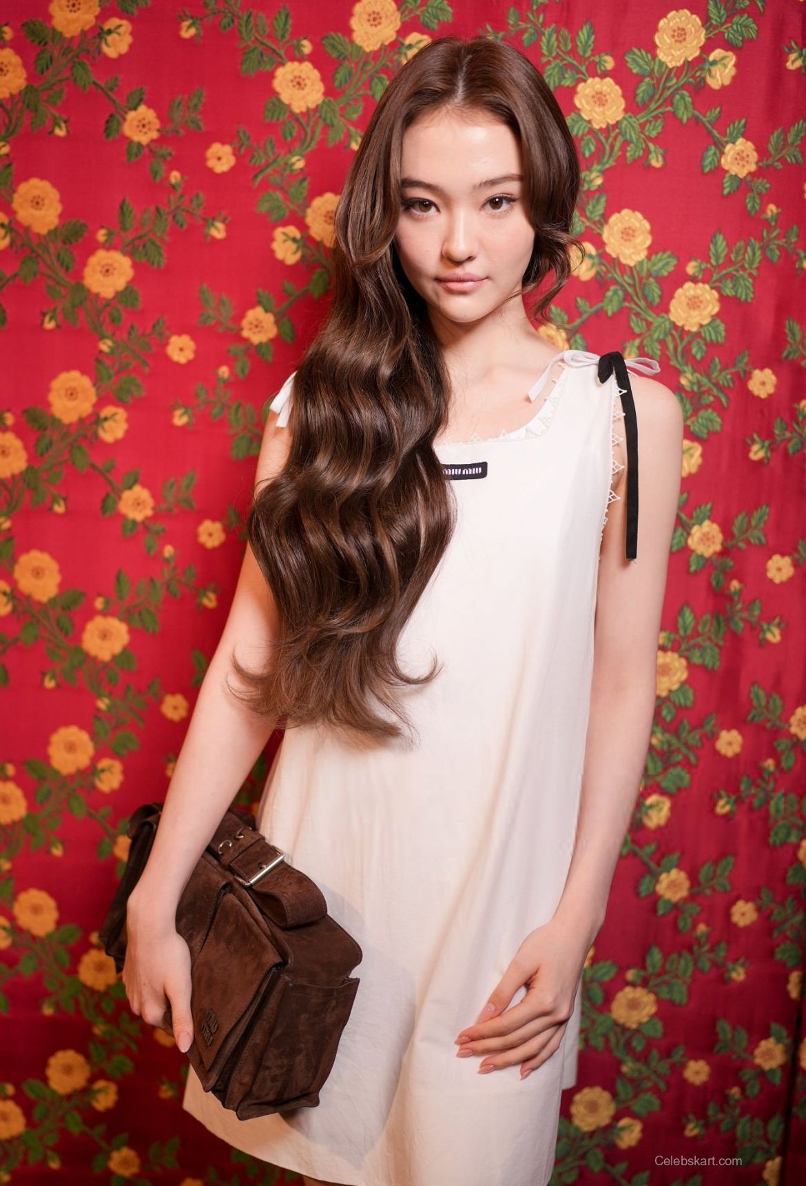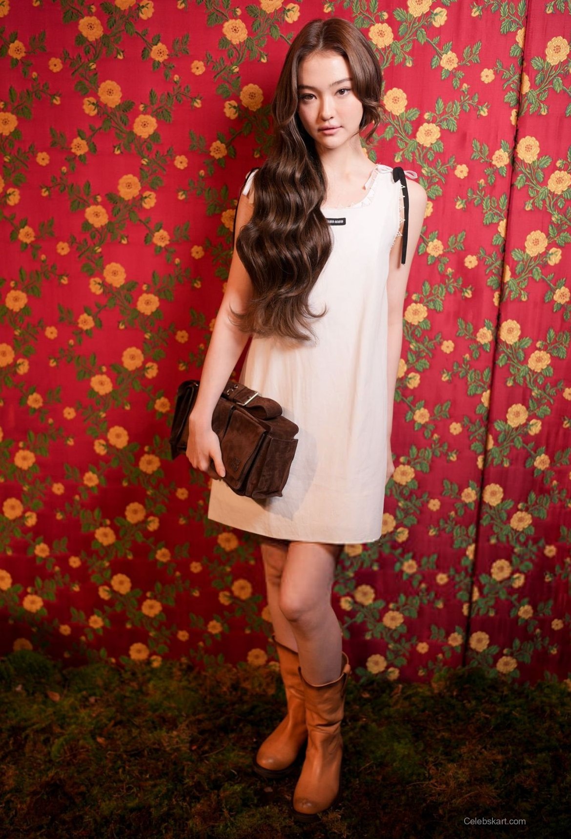 Throughout the event, Ella was seen striking various poses, showcasing her confidence. In one moment, she leaned slightly against a flower-patterned backdrop, exuding a relaxed vibe. Another moment showed her holding a stylish brown bag which complemented her outfit perfectly. The soft waves of her hair framed her face, creating an inviting look that captured the essence of youthful charm. These elements combined to create a visually appealing presentation that naturally drew attention.