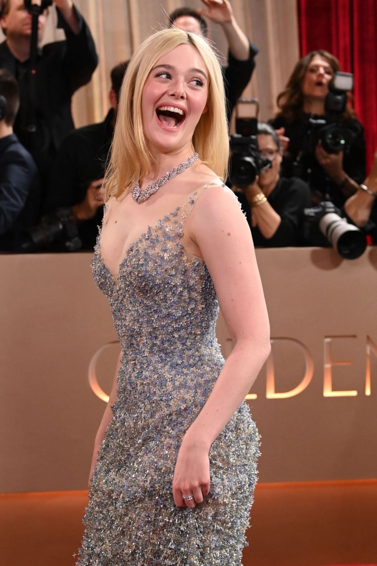 Elle Fanning at Golden Globe Awards in Beverly Hills, January 2026