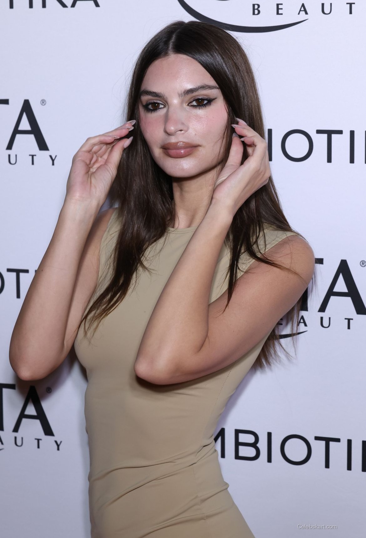 Emily Ratajkowski captivated the crowd at the Cymbiotika x Ulta Beauty launch event in Los Angeles this October 2023. The event showcased new beauty products, but all eyes were on Emily, who dazzled in a form-fitting tan dress. This chic look highlighted her fashionable style and elegance at the star-studded affair.