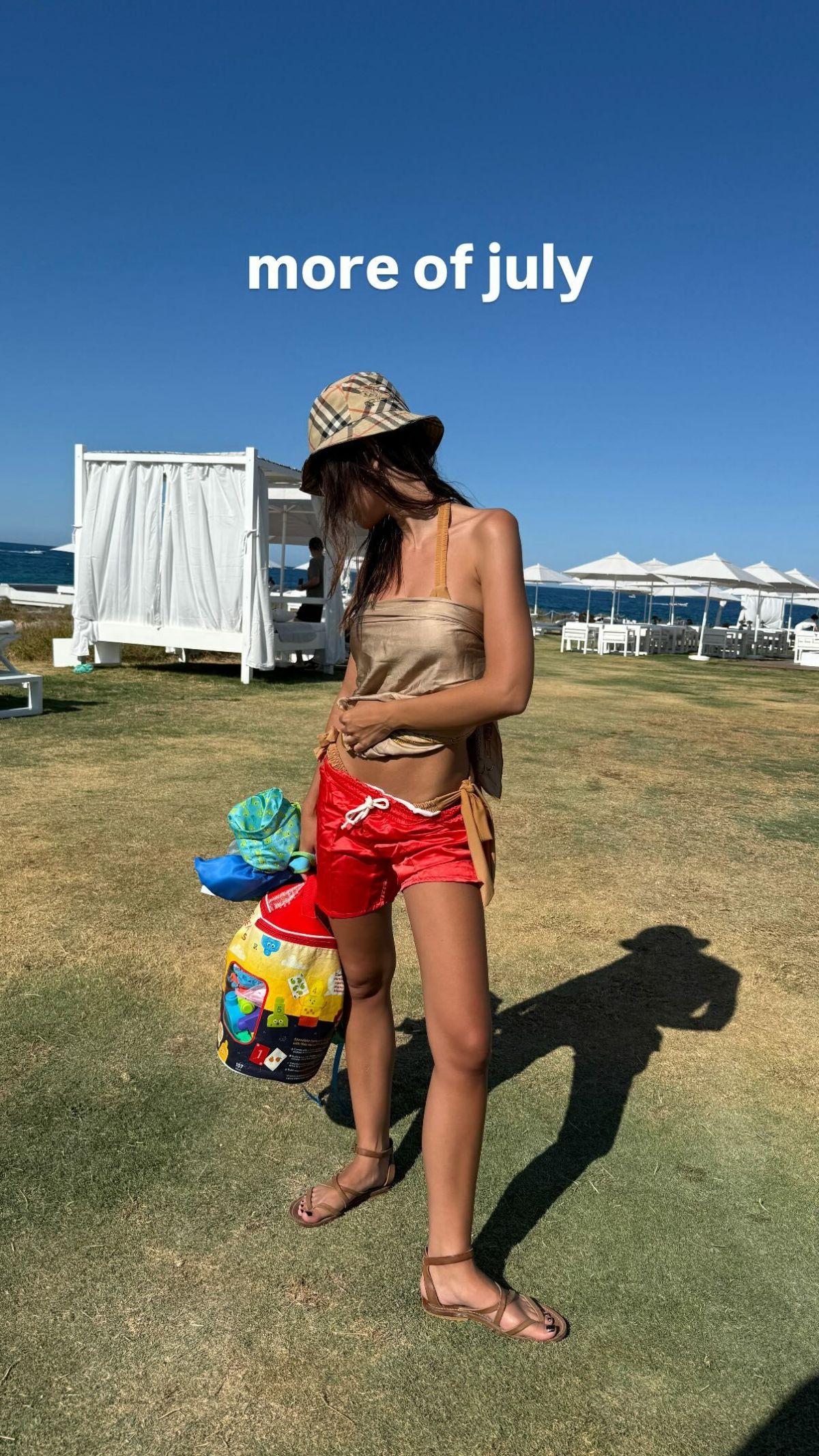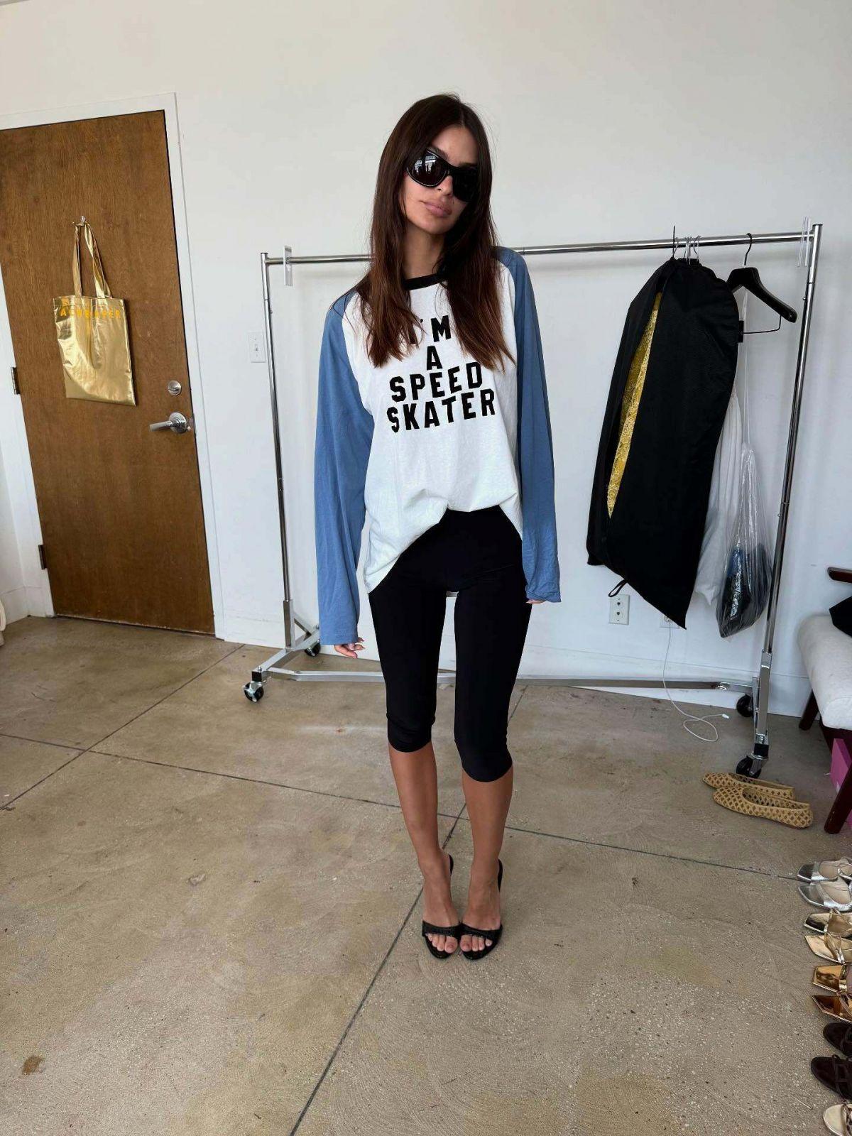 Emily Ratajkowski in a Gym Shorts, Crop Top, and Miu Miu Biker Boots Out in New York - June 2024