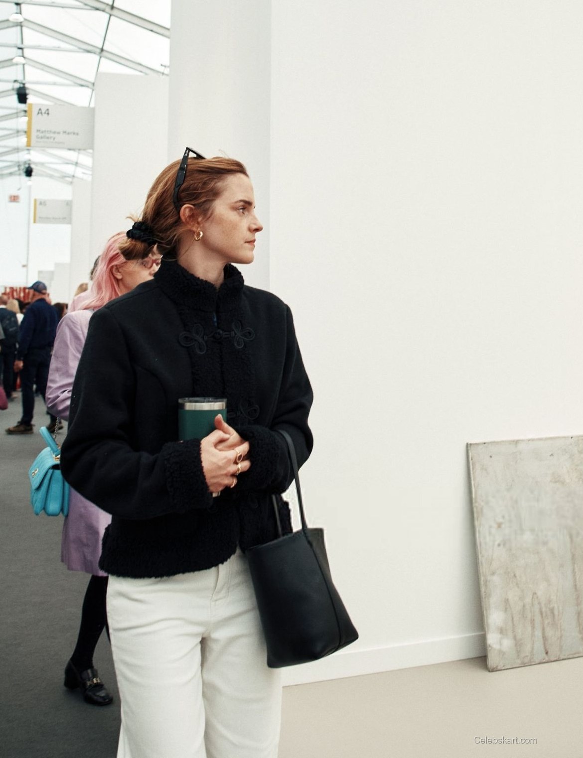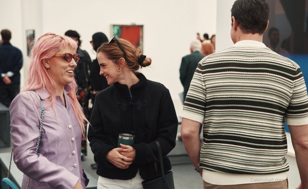 Her beauty look remained soft and natural, with fresh makeup and simple hair styling enhancing the overall refined presentation. The Emma Watson Frieze LA photos highlighted her effortless sophistication.