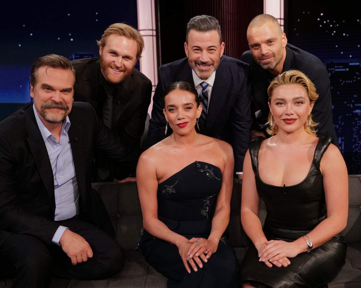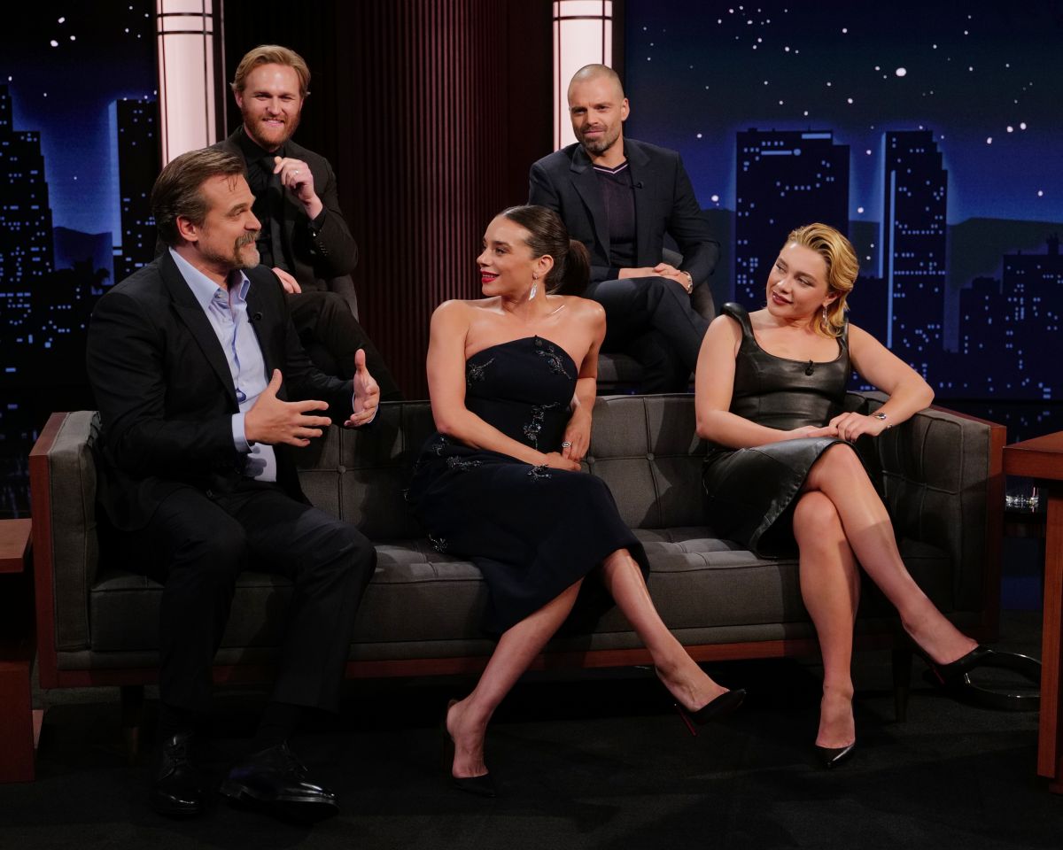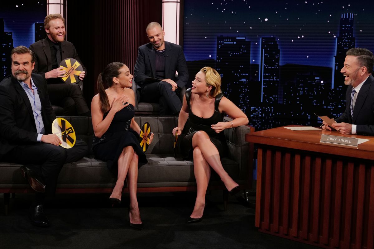 Florence Pugh and Hannah John-Kamen at Jimmy Kimmel Live, April 2025