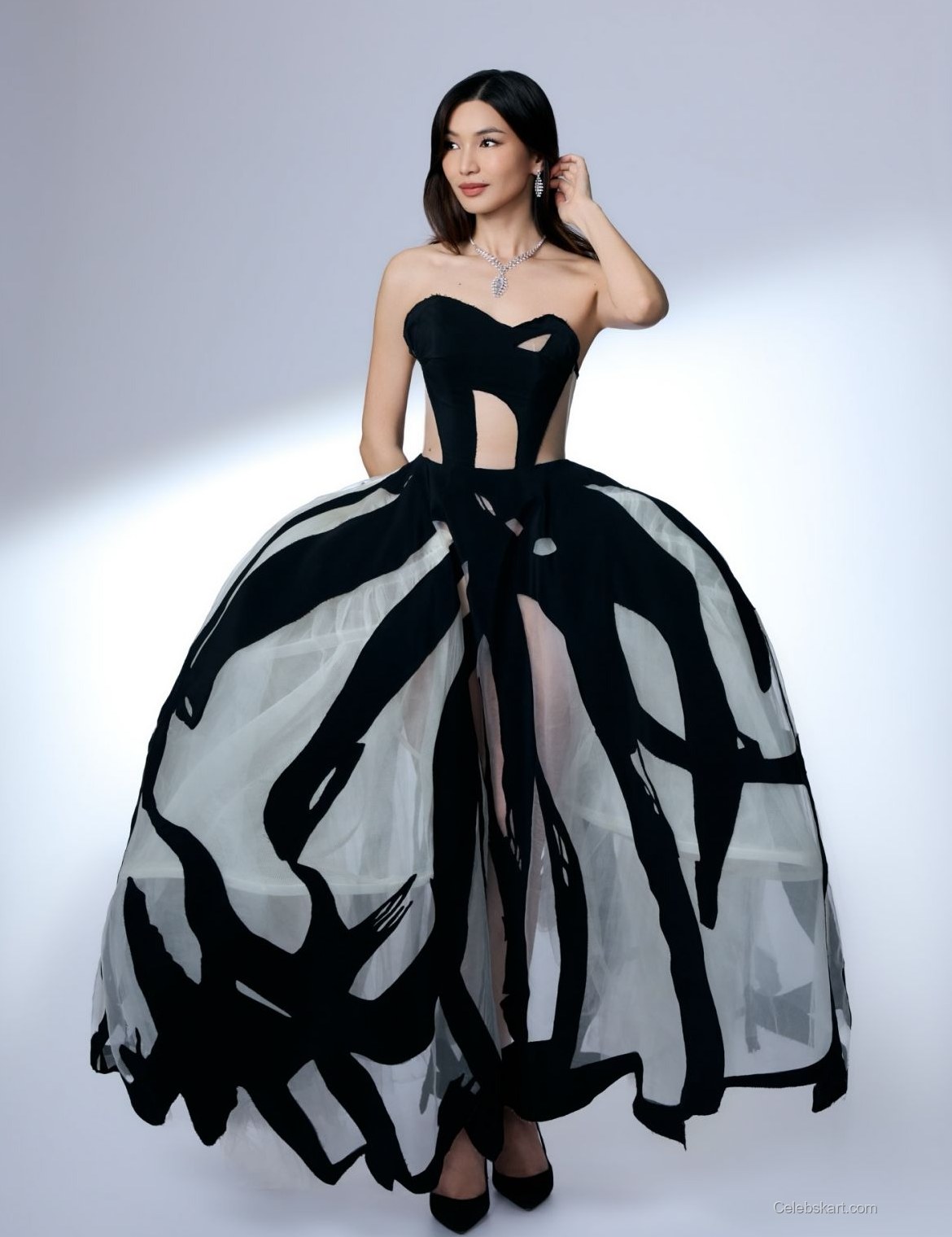 The black gown worn by Gemma Chan was a masterpiece of design, featuring intricate cut-outs that added a modern twist to her classic silhouette. The fabric flowed elegantly, showcasing her sophisticated taste. Complementing her outfit were sparkling accessories, including a statement necklace that caught the light beautifully. If you're interested in similar outfit inspirations, check out Gemma Chan's special event looks for more ideas.