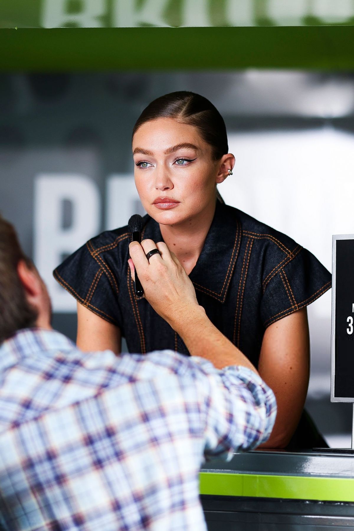 Gigi Hadid on Maybelline Commercial Set in Soho, September 2025