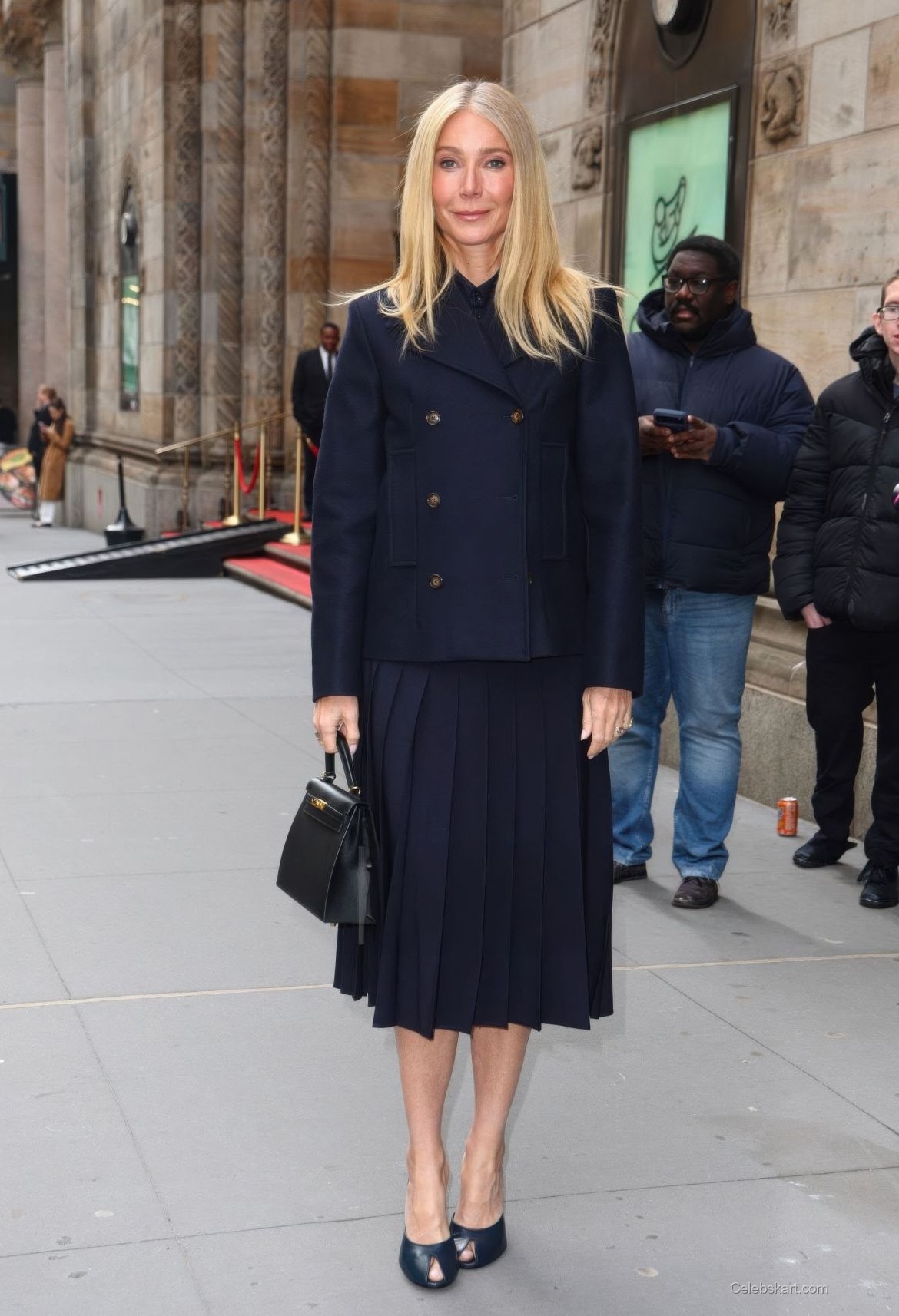 This outfit stands out not just for its color but also for its thoughtful design. Navy is often seen as a versatile choice, striking the perfect balance between formal and casual. Gwyneth's ability to wear such a look while exuding charisma is a testament to her fashion acumen. It's also a style that many can adapt for various occasions. To see similar fashion statements, explore Gwyneth's recent appearances for ongoing trends.