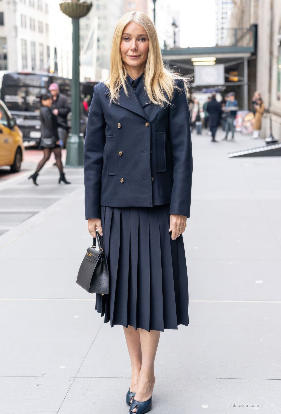 Gwyneth's outfit featured a tailored navy blazer paired with a flowing skirt that accentuated her silhouette. The ensemble was complemented by peep-toe heels that added a contemporary twist. Her choice of colors maintained a polished look while showcasing an effortless charm. Many are looking for ways to replicate this specific look, and Gwyneth Paltrow's fashion choices can serve as great inspiration for similar styles.
