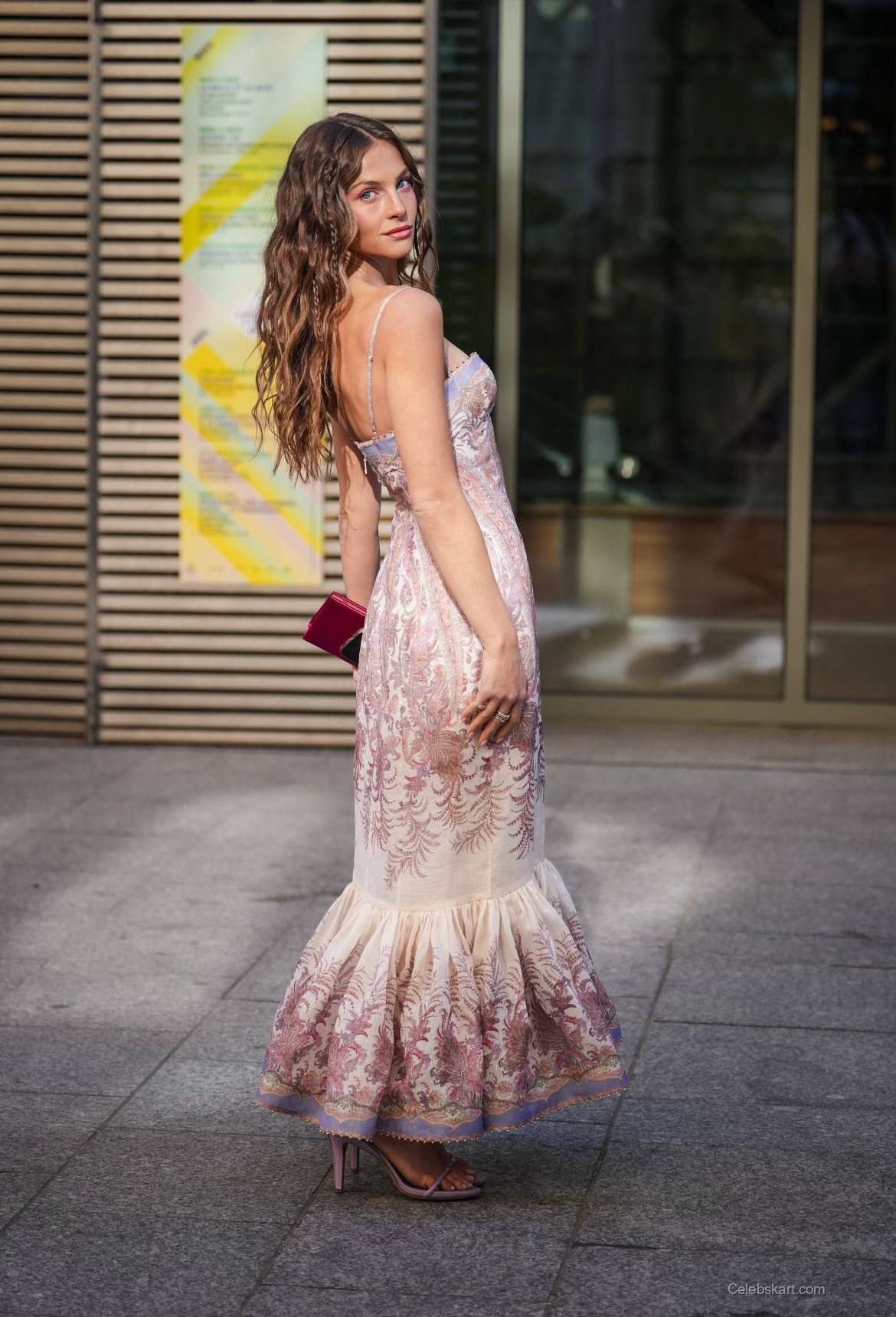 The gown worn by Hanna displayed a delicate color palette featuring soft hues and intricate embroidery. The form-fitting silhouette highlighted her figure elegantly, while the flared bottom of the dress added a whimsical touch. Complimenting her outfit was a chic pink clutch and matching strappy heels, which created a harmonious look. This outfit was a standout at the popular event, symbolizing both sophistication and modern flair.