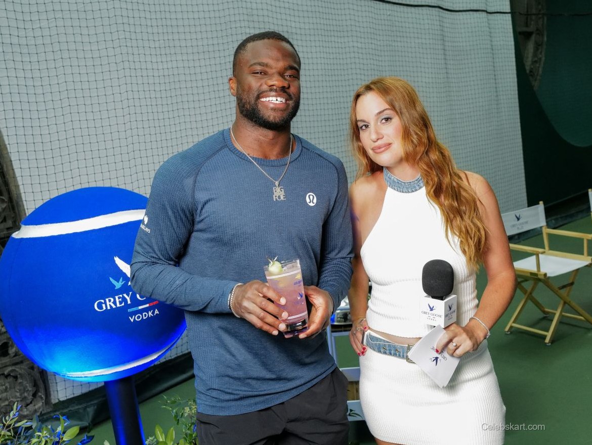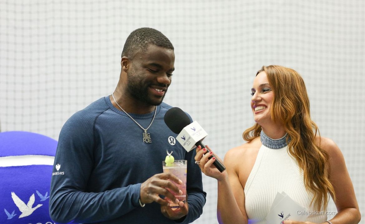 Hannah Berner attended the Grey Goose Vodka and Frances Tiafoe event called Last Serve Bar in New York. She wore a white knitted top that complemented her denim mini skirt. The outfit highlighted her unique style. Hannah accessorized simply with a bracelet. She held a pink drink with a garnish, adding color to her look. Her shoes were distinguishable, combining white and blue tones. The overall arrangement of her outfit was youthful. Her look stood out at the event.