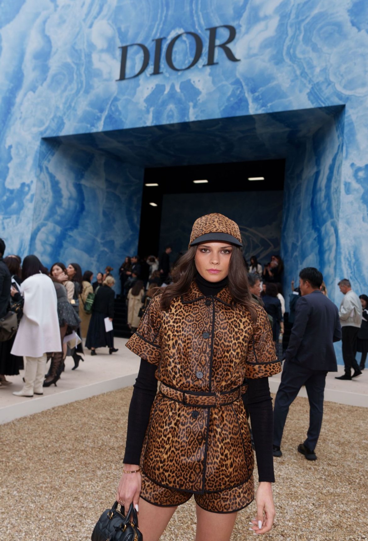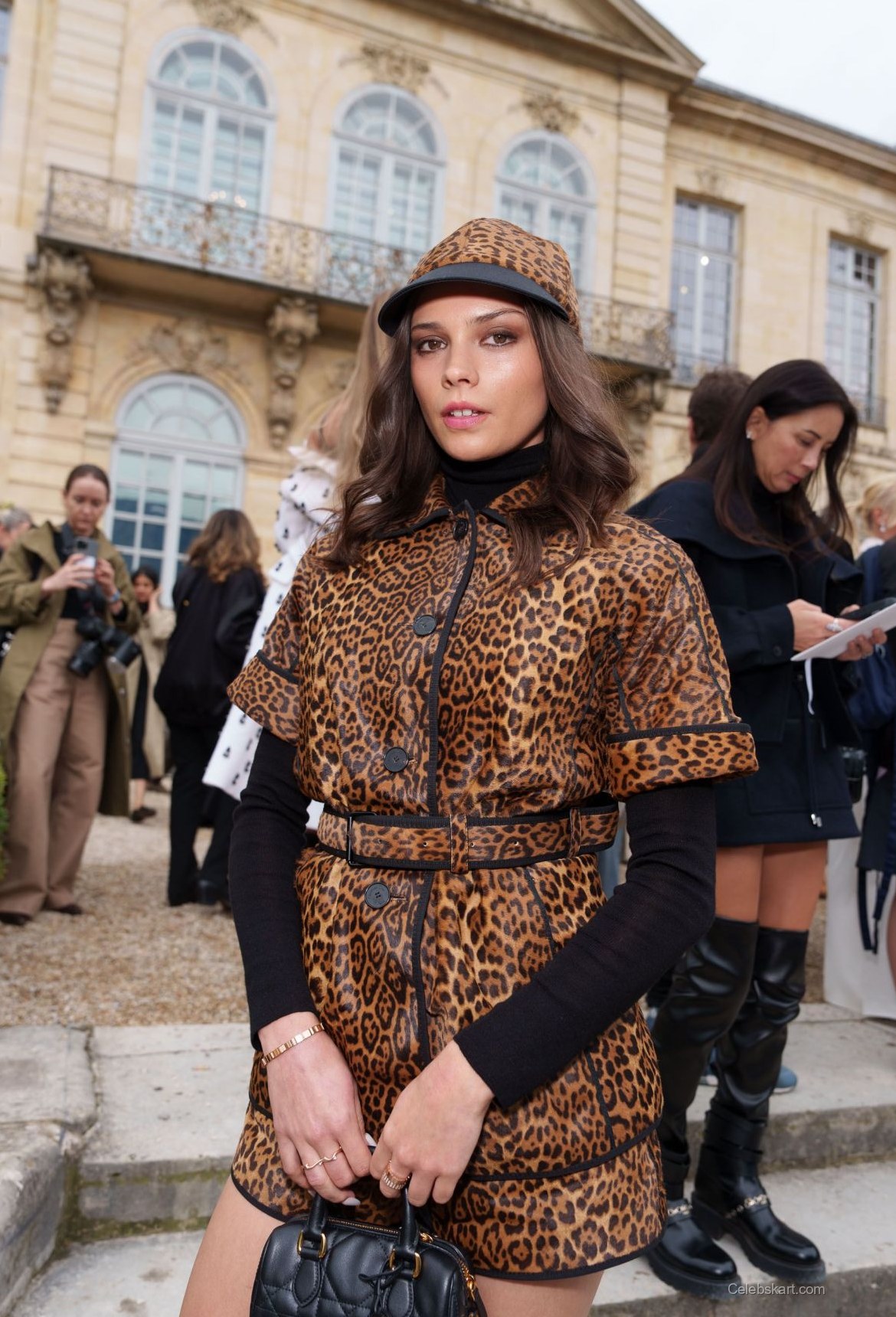 At the Vogue Germany fashion show, Harriet was seen in a cozy, light gray robe that exuded a yet relaxed vibe. The fabric looked soft and plush, perfectly framing her silhouette while allowing for easy movement. Her choice of a muted color complements her natural beauty, enhancing the sophisticated atmosphere of the event. To complete her look, she paired the robe with a subtle yet elegant makeup palette that highlighted her features beautifully.