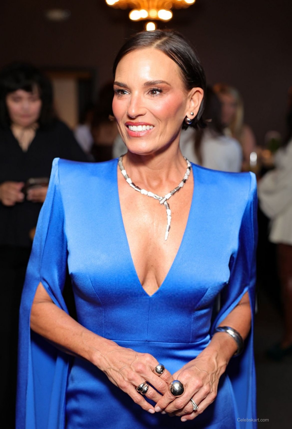During the event, Heidi posed gracefully among other guests, radiating warmth and charm. In one moment, she confidently adjusted her gown, allowing the fabric to flow elegantly around her as she smiled for the cameras. The carefully chosen accessories, including a stunning necklace that sparkled under the event lights, created a cohesive look. Surrounded by floral arrangements, the serene setting only added to the captivating atmosphere.
