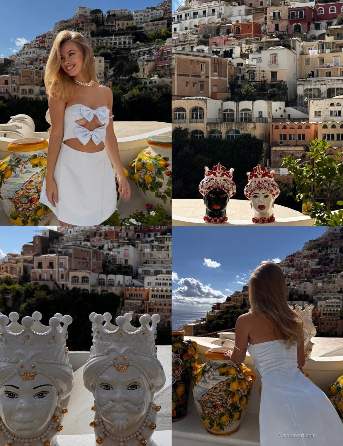 Set against the vibrant buildings of Amalfi, Ilona's appearance was not just about fashion but also about enjoying life's moments. As she posed among the artistic ceramic pots typical of the area, she showcased how fashion can merge with local culture. Her charismatic presence lit up the background, making it a perfect match for the iconic coastal scenery. For more moments captured at this breathtaking location, see Ilona's stunning poses or discover further styles from Amalfi.