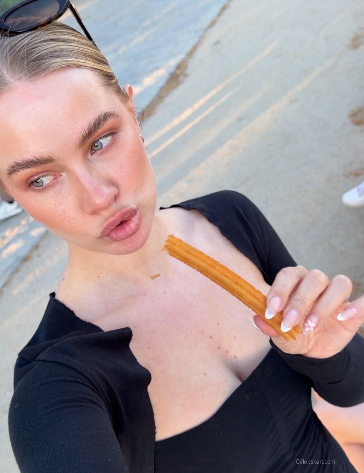 Ilona Arsentieva captivates her fans with a recent Instagram post, showcasing her effortlessly chic style. The image features the model enjoying a churro while striking a playful pose. Her expression radiates a mix of confidence and fun, drawing in viewers with her engaging demeanor.