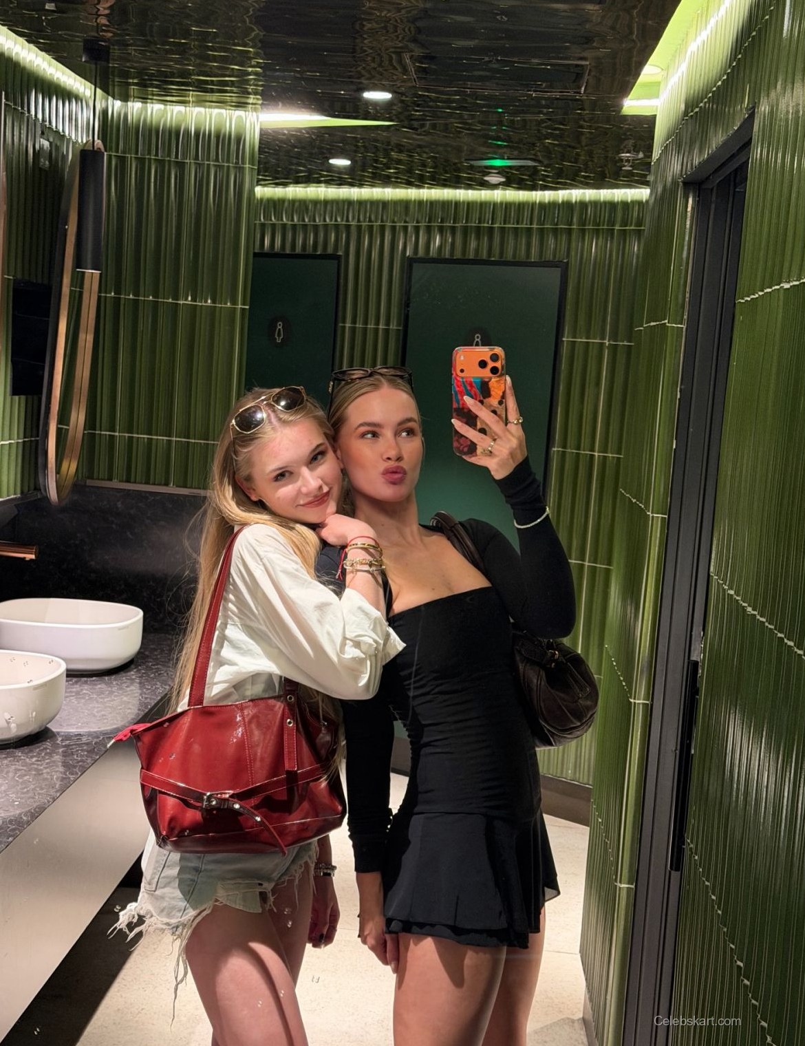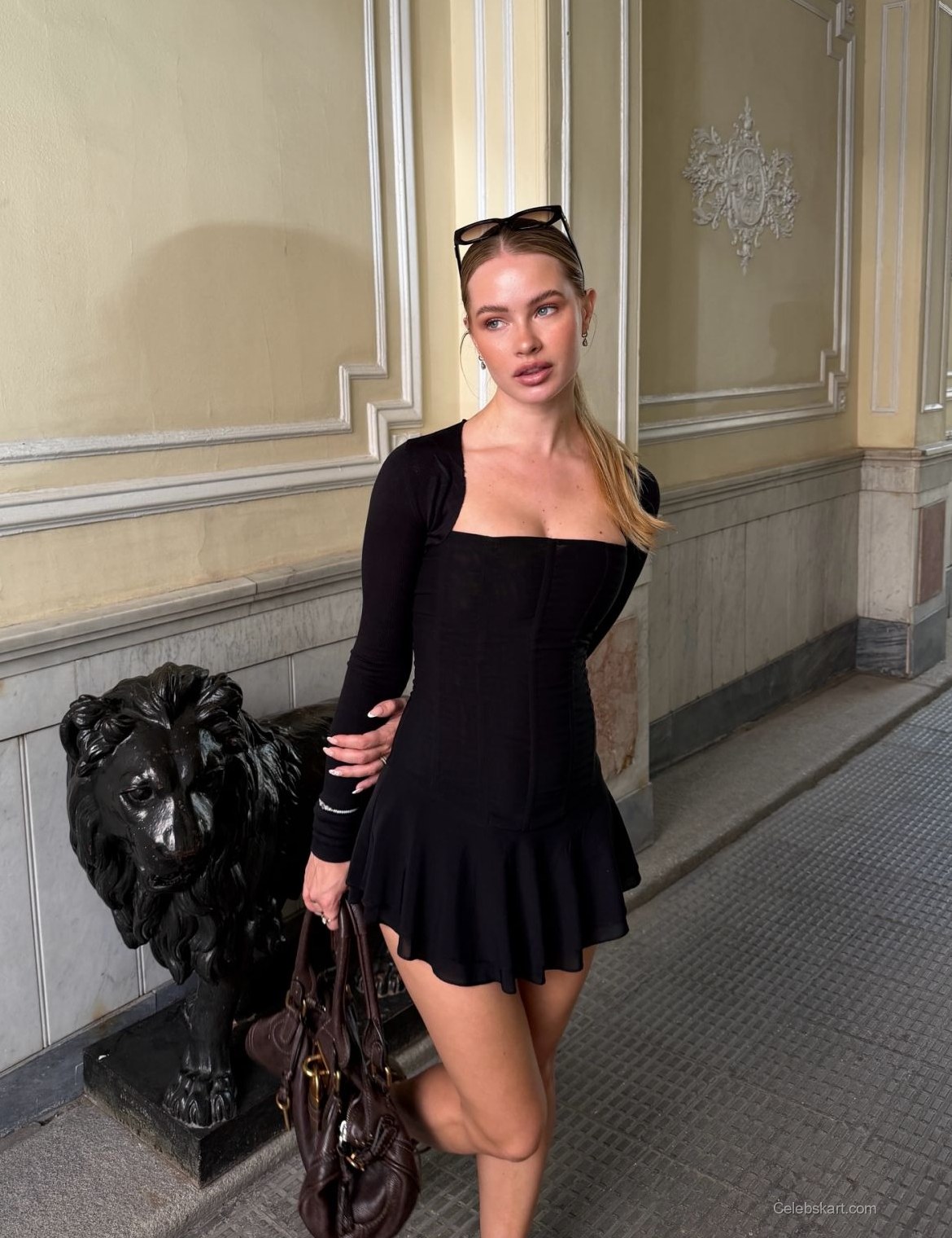 In this Instagram snapshot, Ilona wears a sleek black dress that perfectly complements her figure. The dress features a subtle off-shoulder design, highlighting her collarbones and adding a touch of elegance. The fabric hugs her curves while remaining comfortable, making it ideal for casual outings. She pairs the look with stylish black sunglasses perched atop her head, enhancing her trendy vibe.