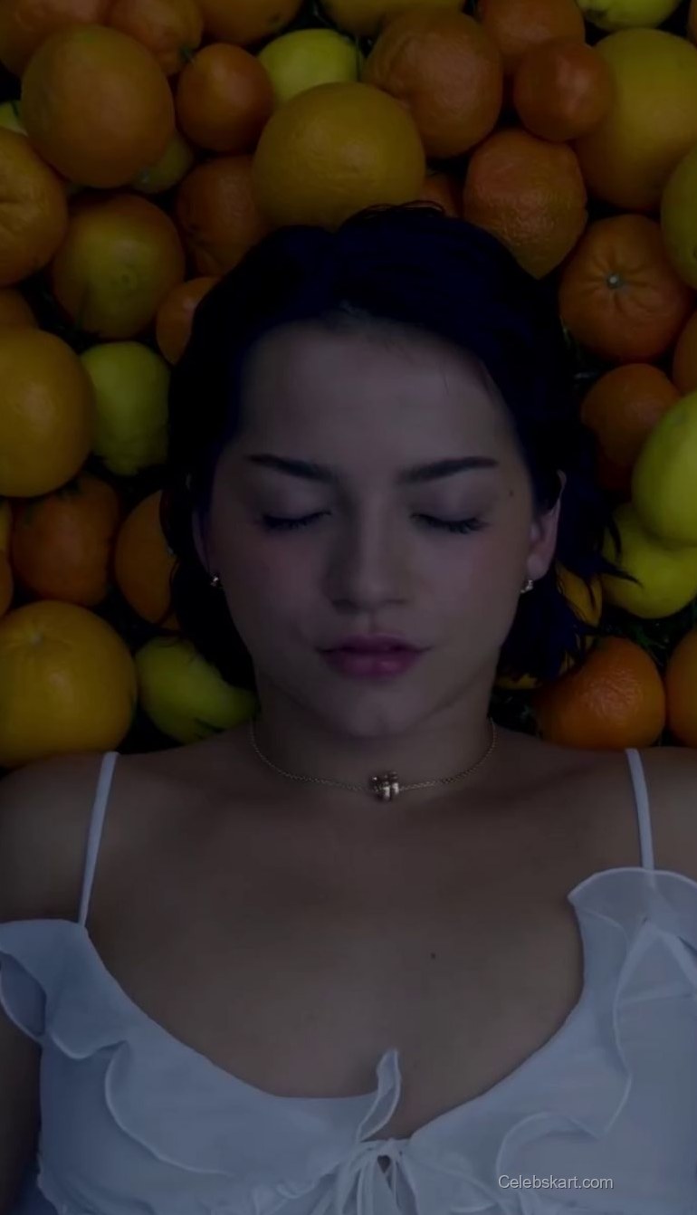 Isabela Merced recently shared photos of herself enjoying a relaxing herbal bath. She is wearing a delicate white outfit that features straps and ruffles. The bath is filled with colorful citrus fruits and floating herbs. The setting creates a calming ambiance. Her hair is damp and styled in loose waves. The focus is entirely on her and the unique elements in the bath. Isabela's outfit complements the fresh and vibrant setting beautifully.