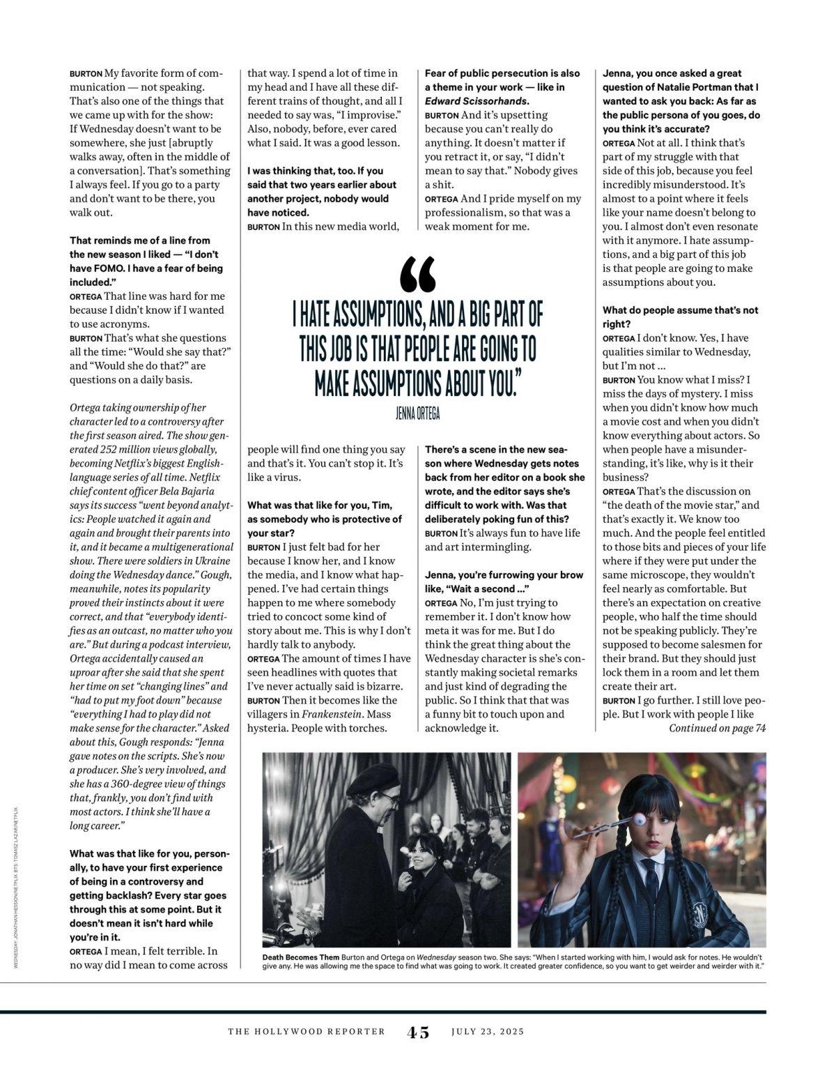 Jenna Ortega joins Tim Burton for THR cover, July 2025