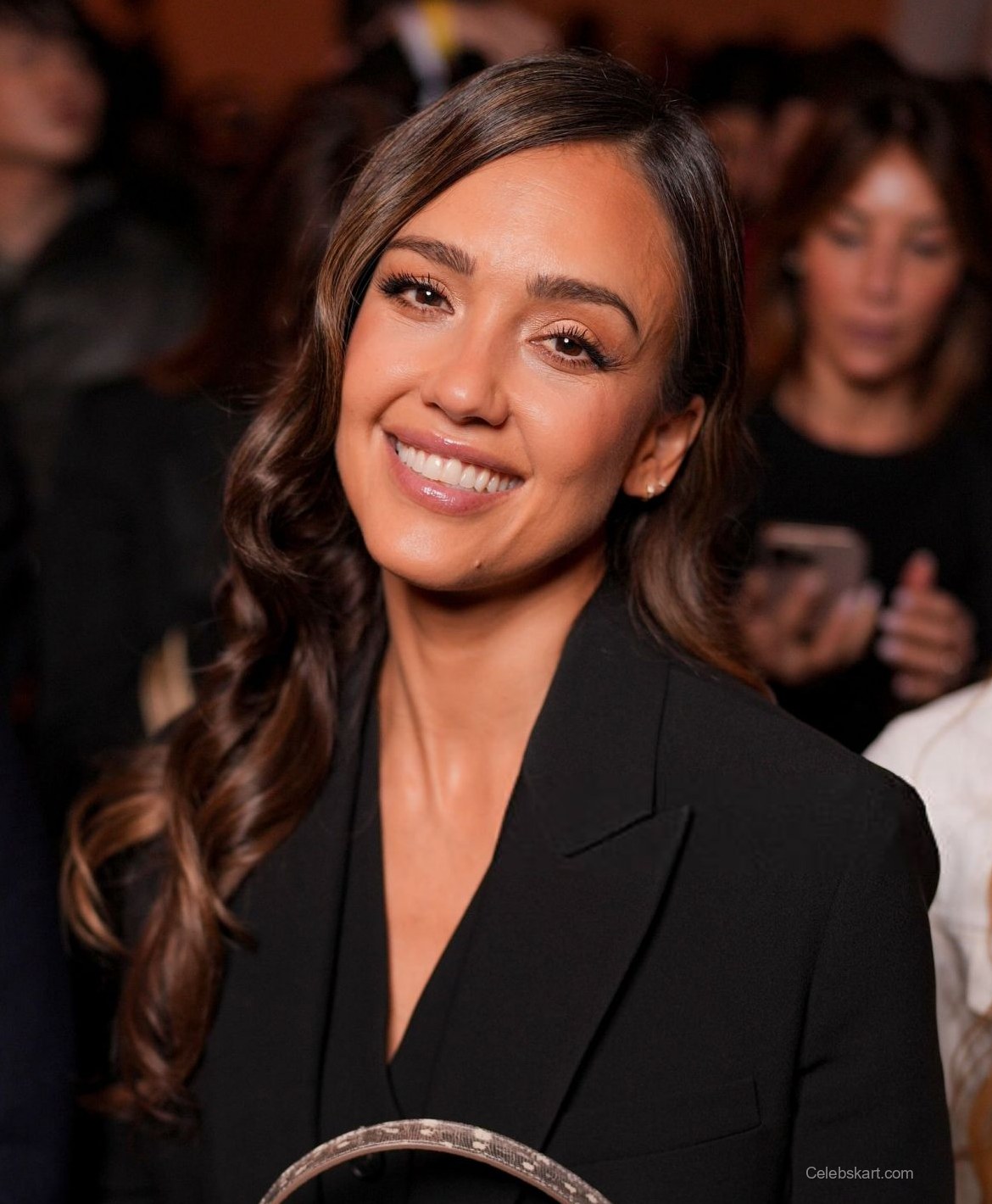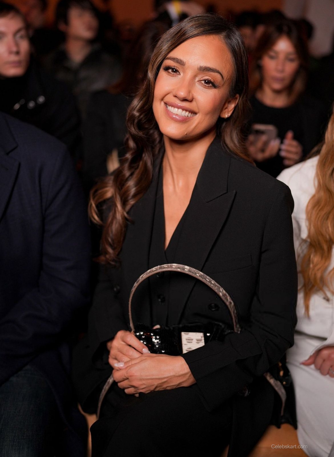During the arrivals and front-row moments, Jessica appeared relaxed and confident, offering photographers a series of poised yet natural poses. Her beauty styling featured soft waves and radiant makeup, reinforcing the effortless sophistication that has defined her red carpet reputation for years.