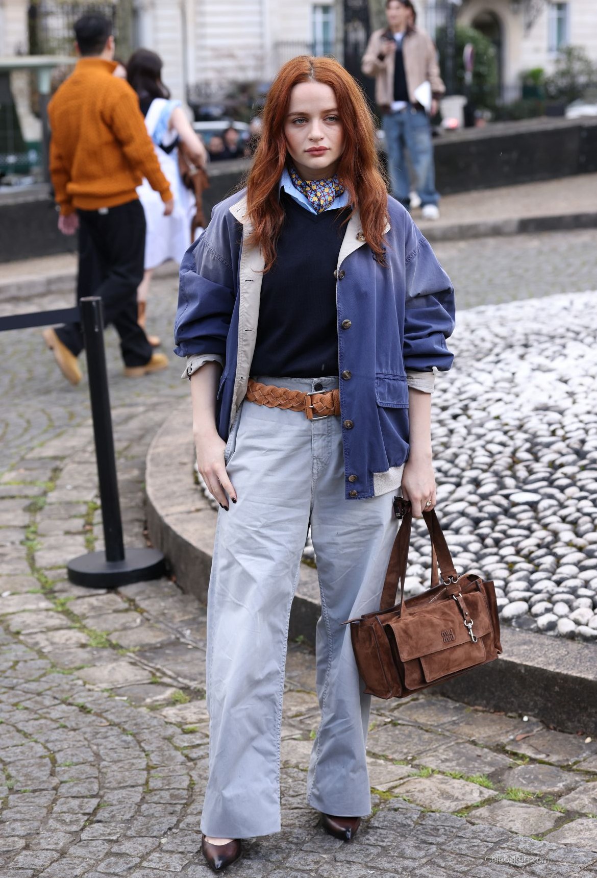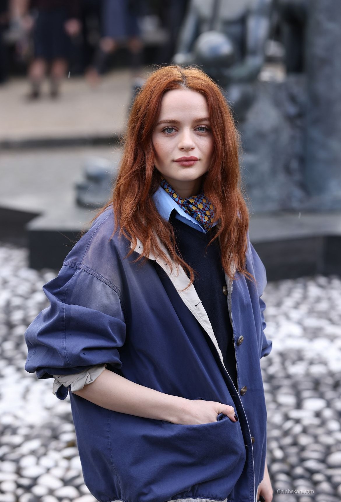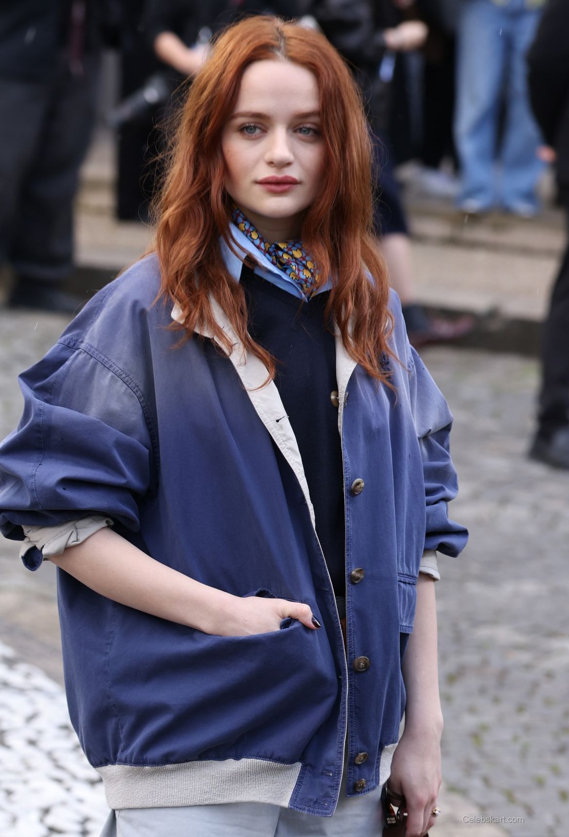 This outfit is a testament to how personal style can be both comfortable and visually striking. Joey's combination of casual pieces conveyed a sense of individuality, aligning with current fashion trends that prioritize authenticity. The oversized jacket, when paired with tailored trousers, displayed a keen understanding of balance in fashion. Joey King's look at the Miu Miu Fashion Show emphasizes how finding the right mix of comfort and style can create a memorable impression. The intricate design of the scarf not only drew attention but also served to highlight her vibrant hair color, creating a harmonious look throughout.