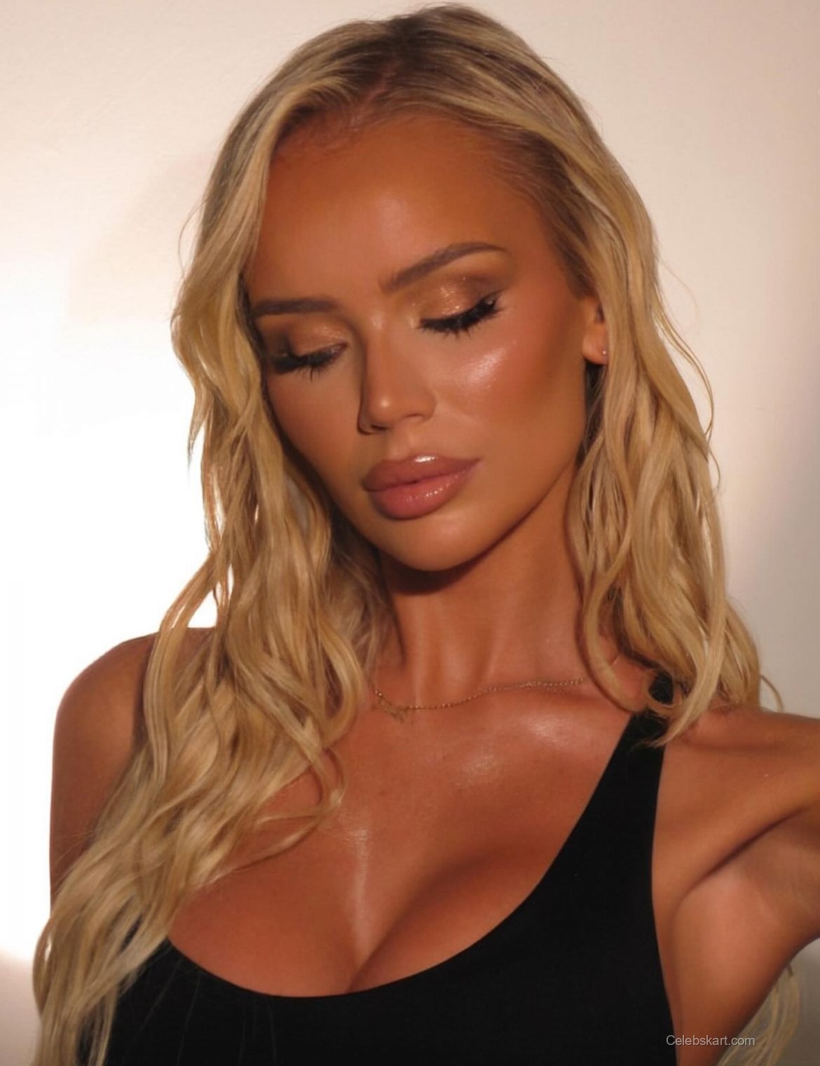 In this fashion shoot, Julia Cavanagh stands confidently in a white crop top. The lace trim adds a delicate touch to her outfit, contrasting with the tough denim. Her high-waisted jeans fit well and enhance the overall look. Julia’s effortless styling makes the outfit appealing for casual occasions.