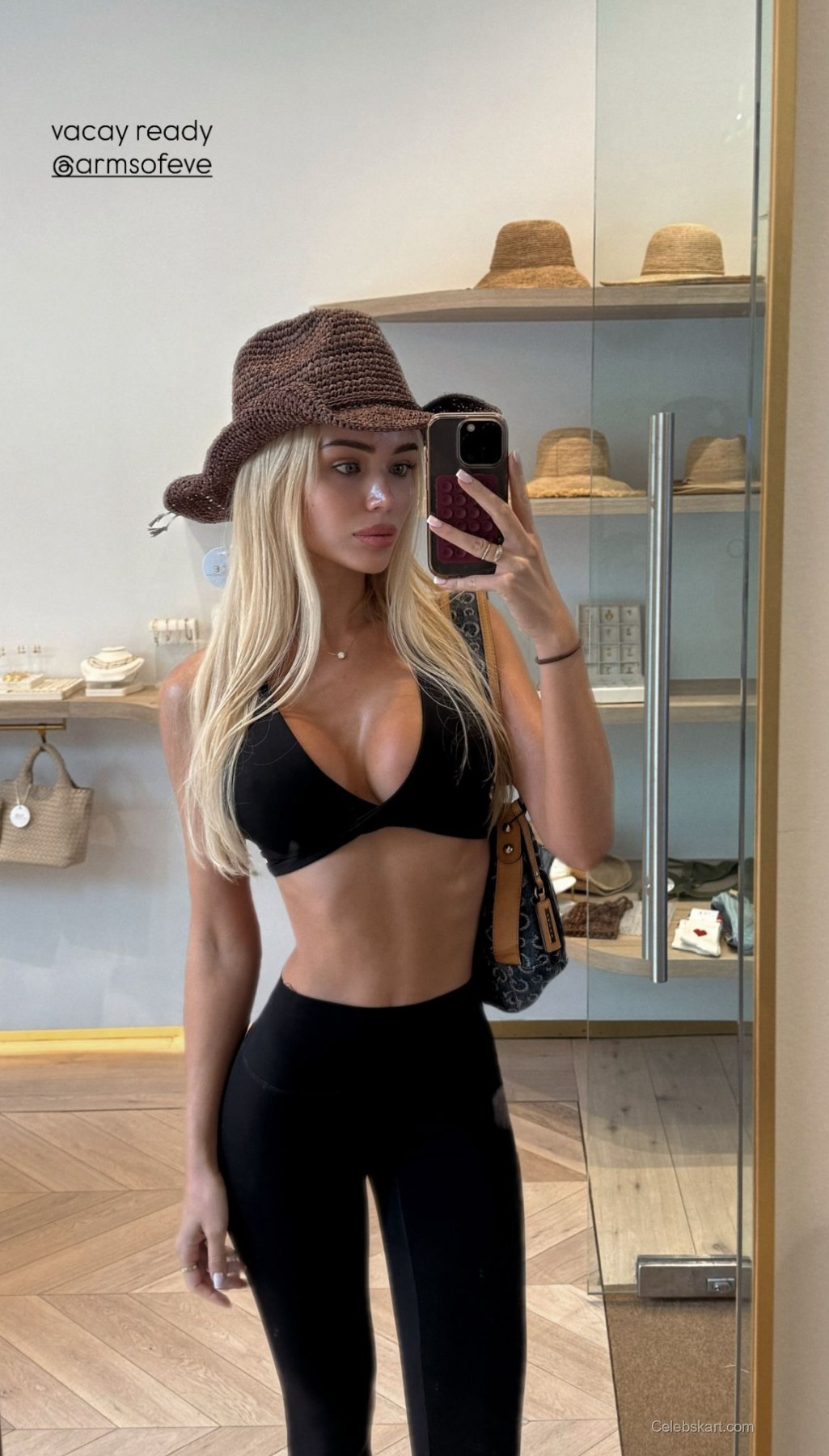 Julia was spotted in a sleek black ensemble that perfectly accentuated her curves. The outfit featured a form-fitting top that emphasized her figure, paired with matching leggings that flowed seamlessly. Accessories included a trendy braided hat and a chic bag that added a touch of elegance. As she posed in front of a mirror, her outfit radiated confidence and a carefree vacation vibe.