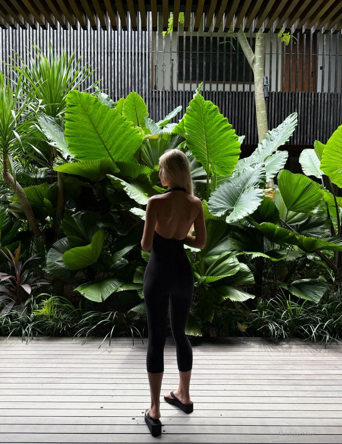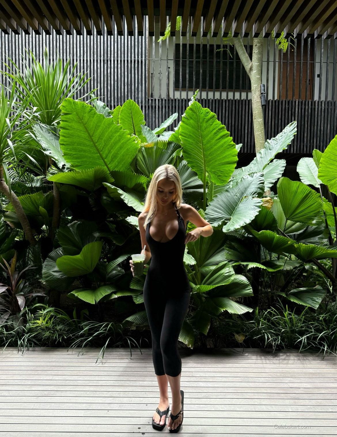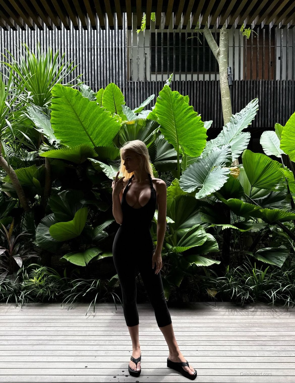 Julia frequently shares moments from her everyday life, whether lounging by the pool or strolling through chic boutiques. In one notable Instagram pic, she’s seen stepping forward on a wooden deck surrounded by lush green foliage, creating a stunning backdrop for her fashion. Interacting with her environment, Julia’s playful demeanor shines through, highlighting her love for fashion and life.